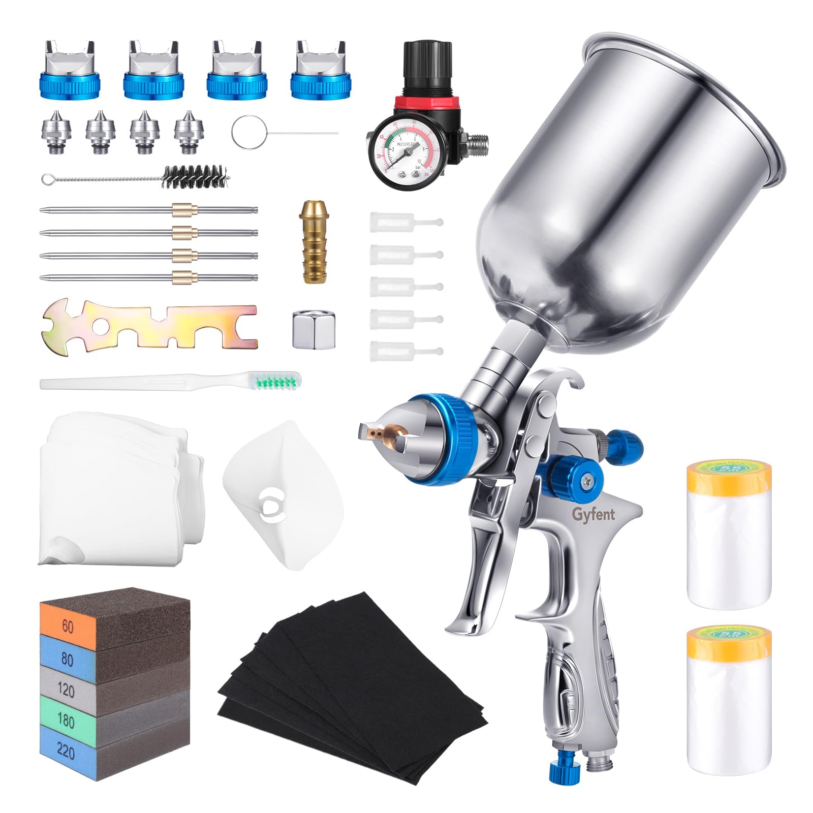 Juego de pistola de pintura en aerosol para auto, pistola de pintura de aire HVLP con 4 boquillas y 2 piezas de papel de enmascara