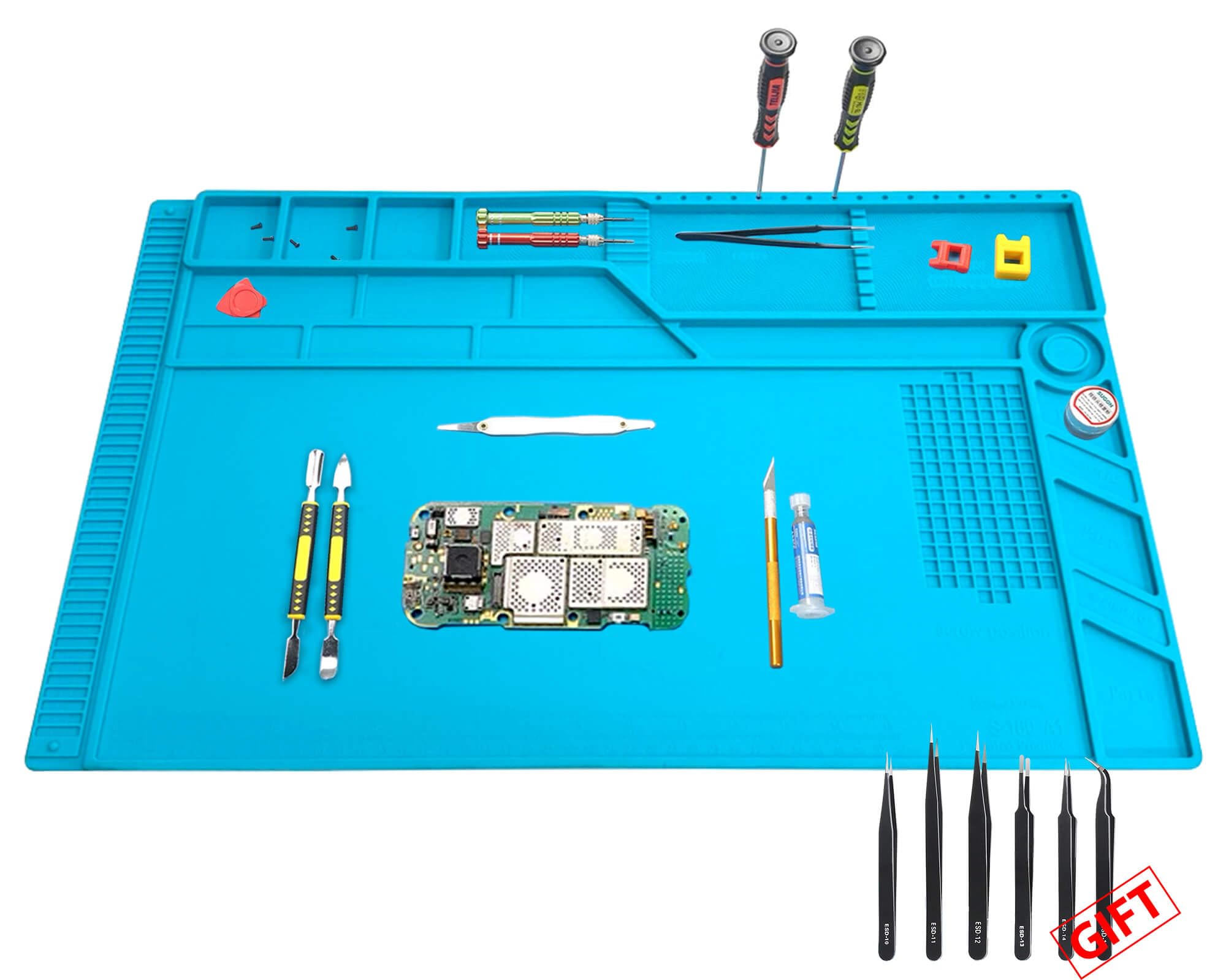 Alfombrilla de soldadura de silicona totalmente funcional, resistente al calor, 932 °F, alfombrilla de trabajo de reparación elect