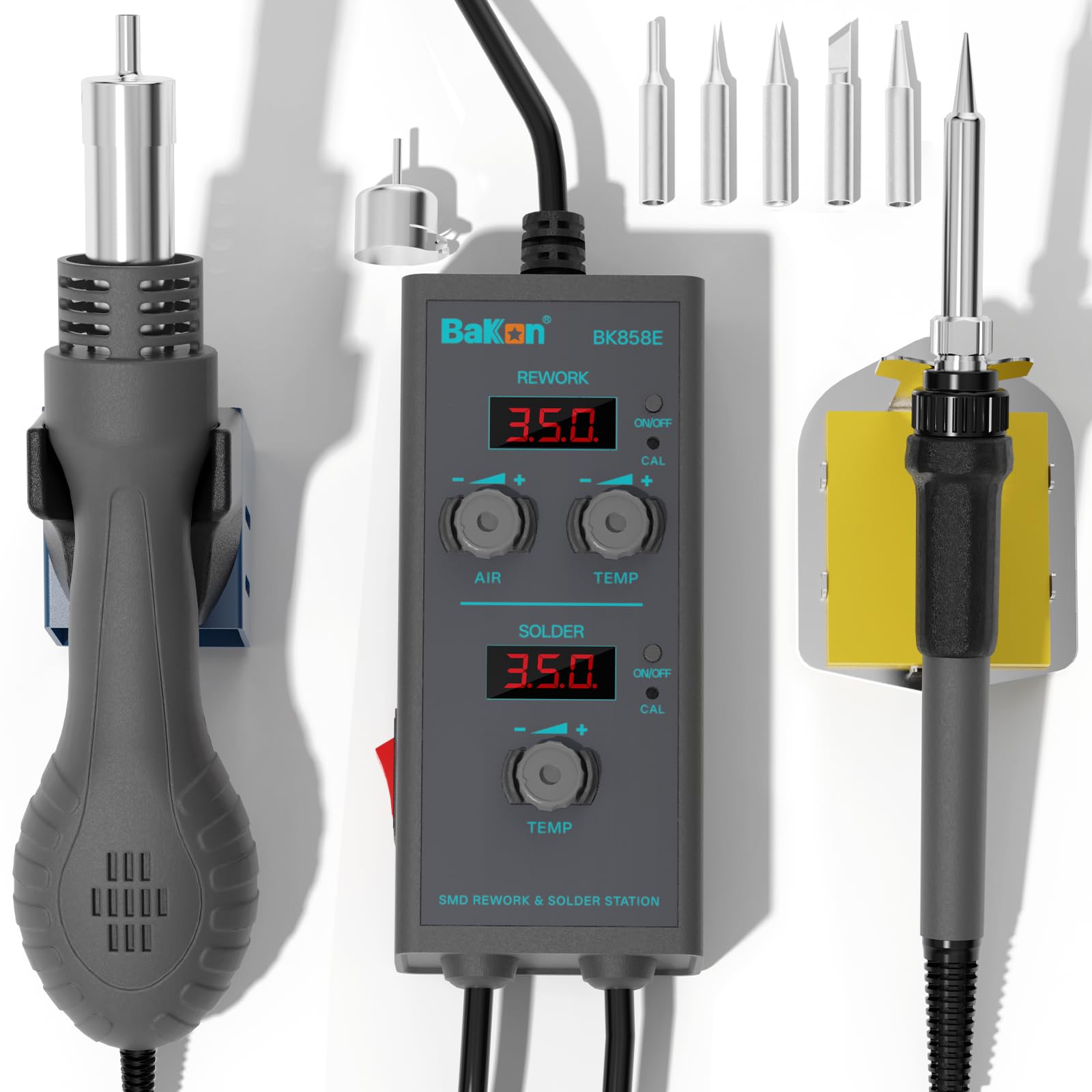 BK858E Estación de soldadura de aire caliente, 2 en 1 pistola de soldadura smd y hierros, estación de retrabajo de aire caliente p