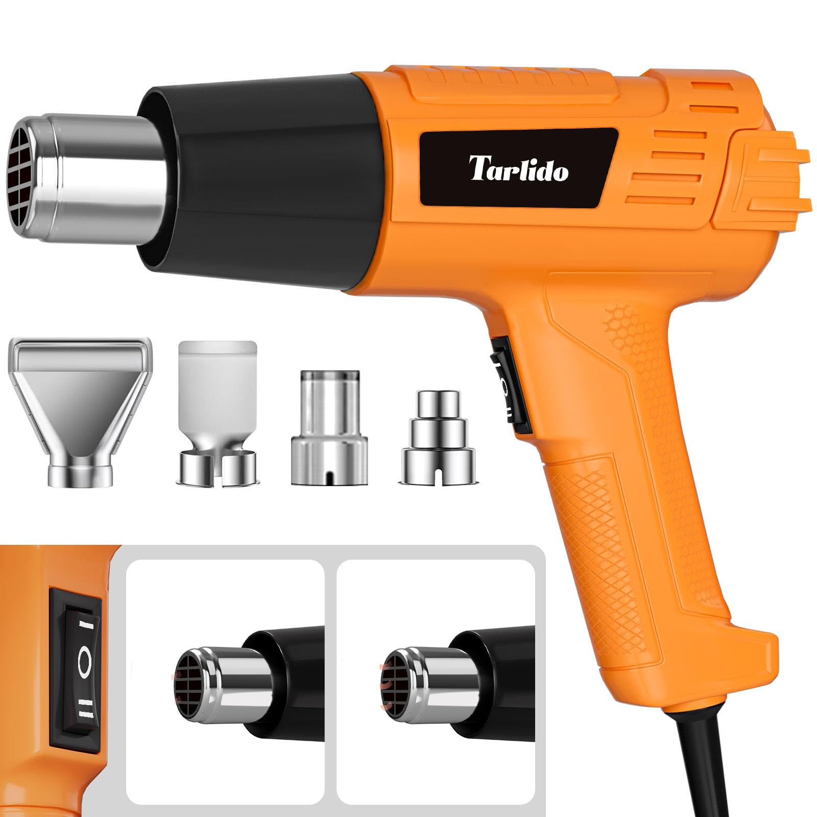 Pistola de calor, ajustes de temperatura dual, kit de pistola de aire caliente de 752 ℉ a 1112 ℉ con 4 boquillas para manualidades