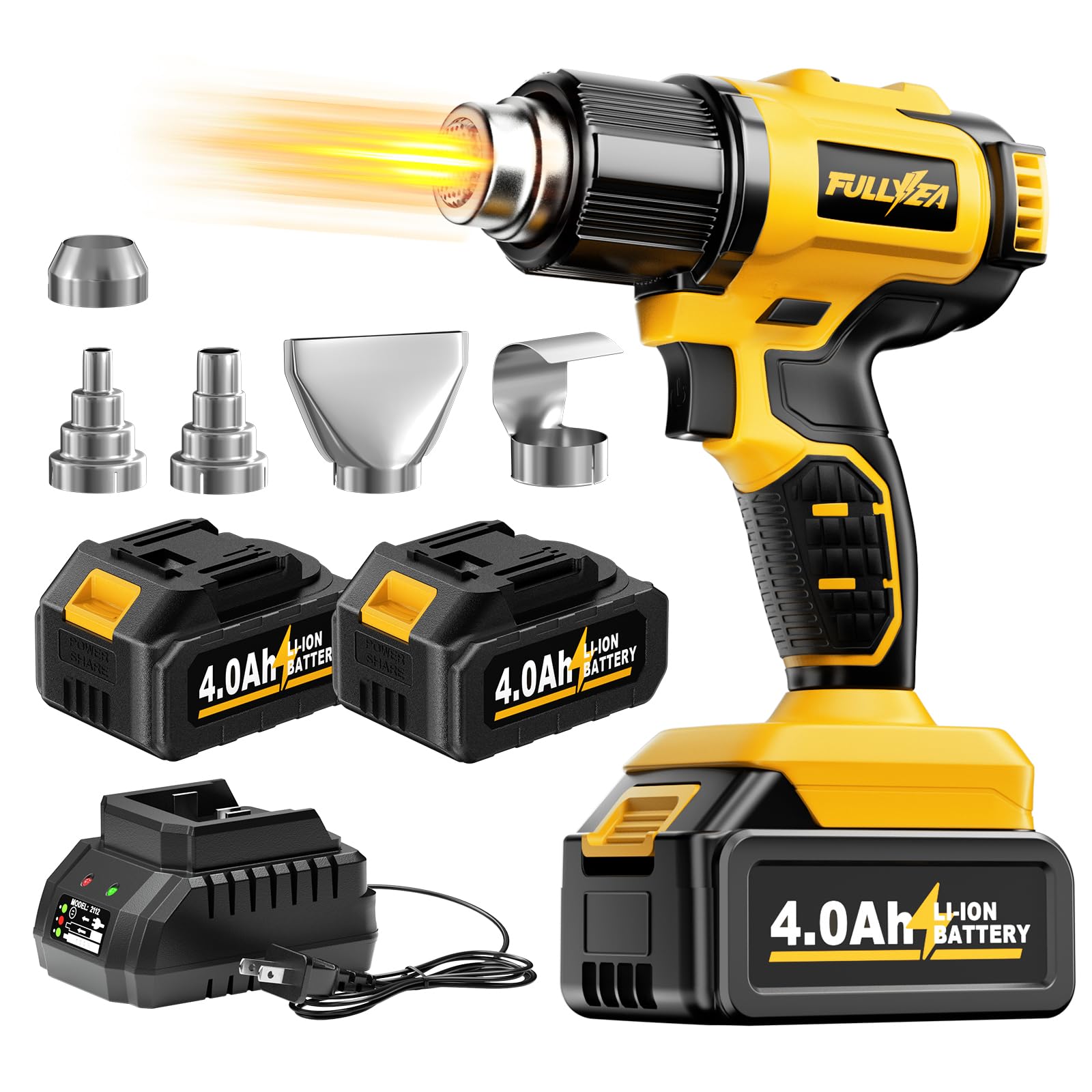 Pistola de calor con dos baterías de 4.0 Ah, pistola de calor inalámbrica de 21 V, soldadura de calentamiento rápido de 122 ℉ a 10