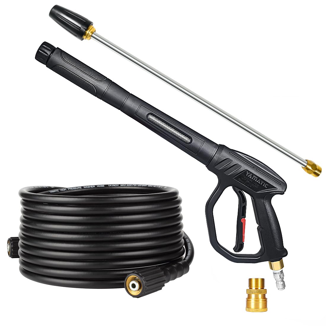 YAMATIC Kit de pistola y manguera de lavado a presión de 25 pies con boquilla turbo, mango ergonómico, manguera de lavado de alta