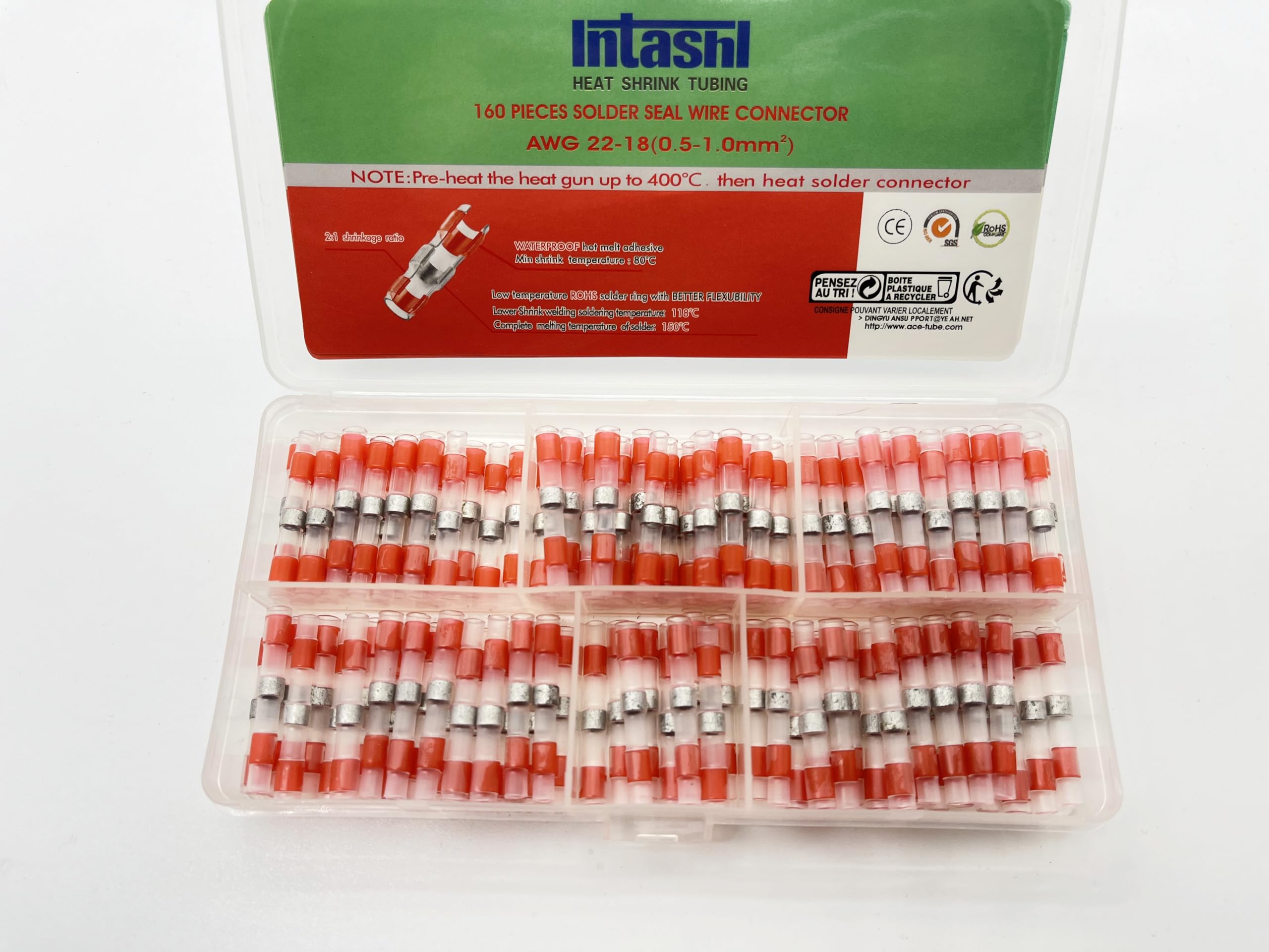 AWG22-18 – Conector de alambre de sellado de soldadura termorretráctil de bajo punto de fusión, 160 piezas con pasta de soldadura,