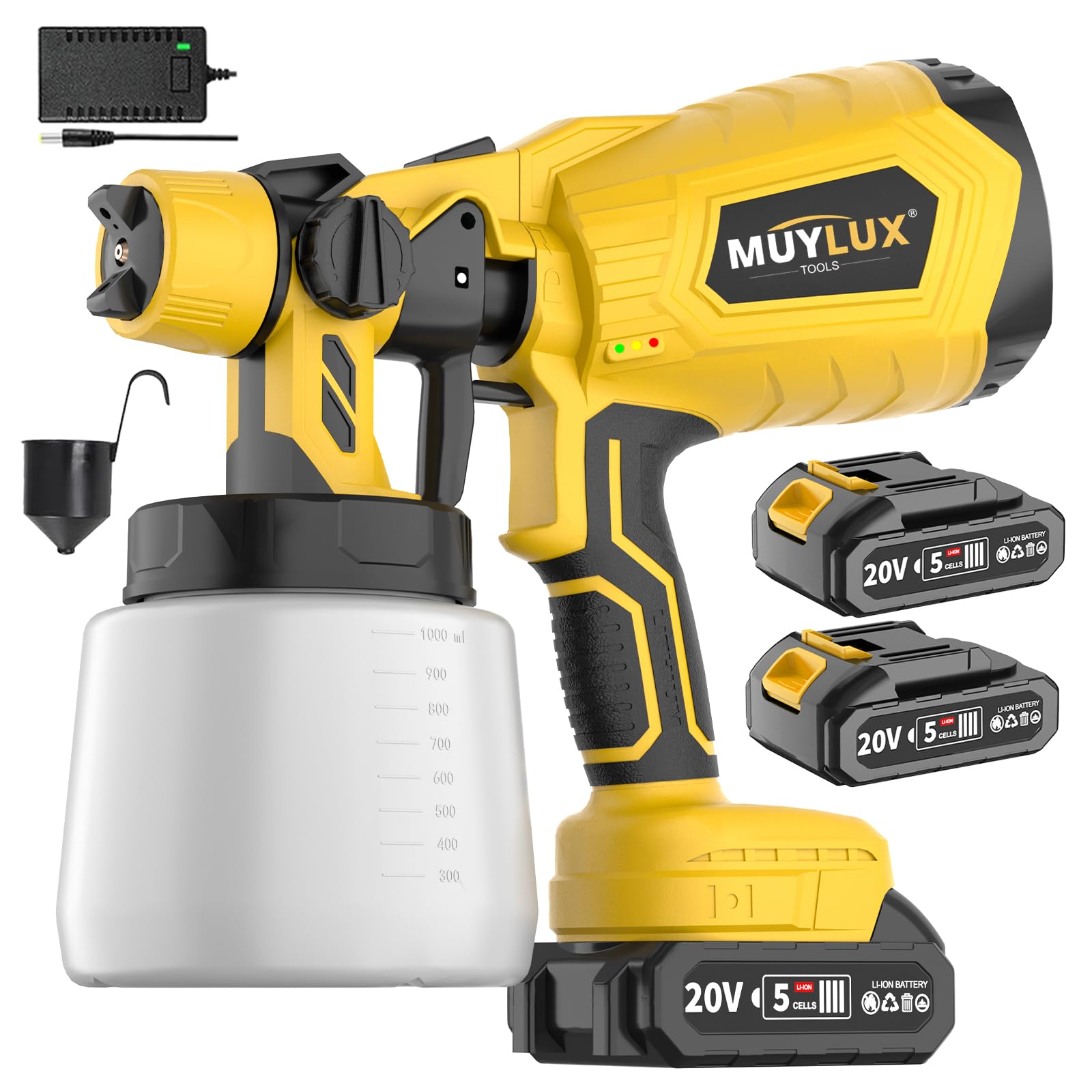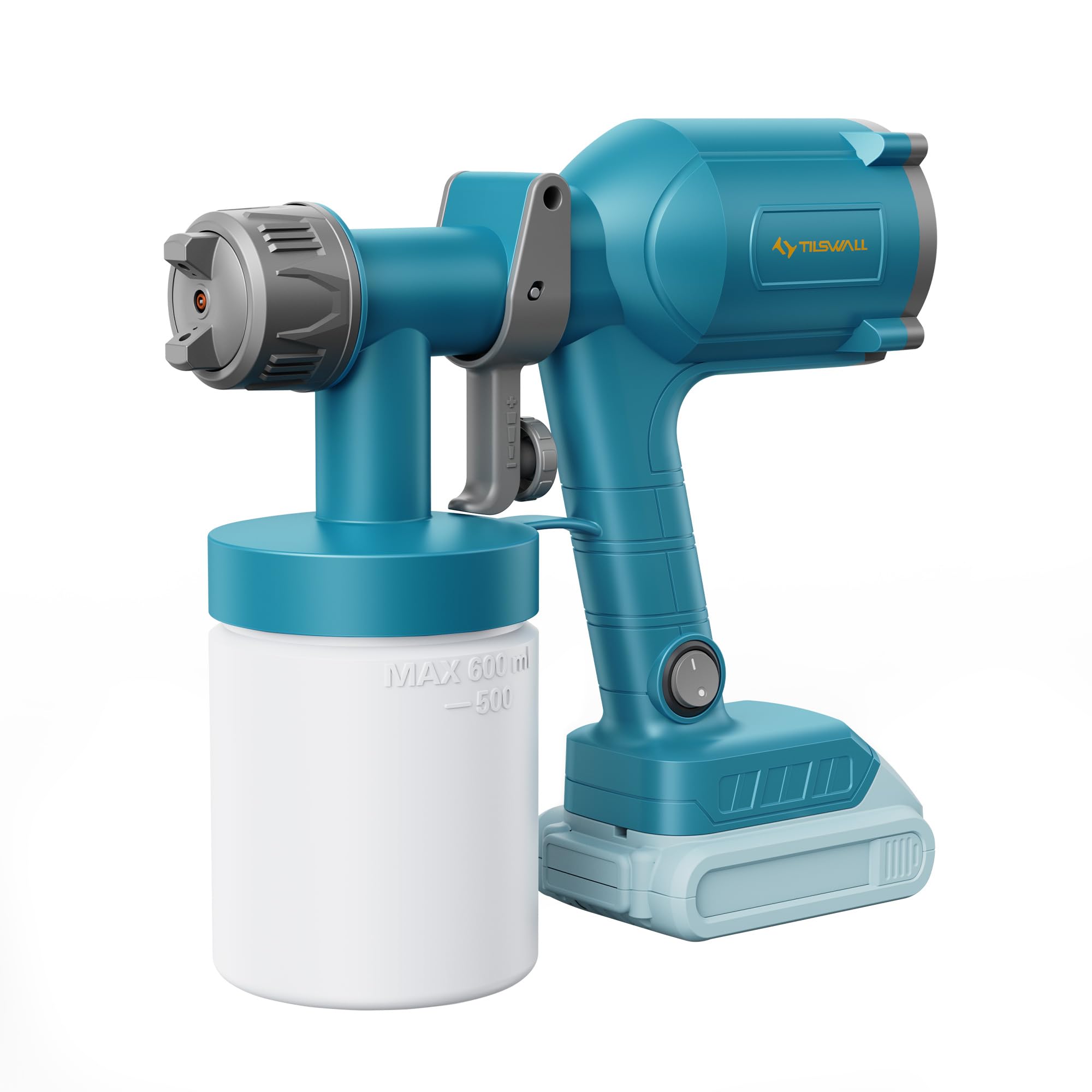 Tilswall Pulverizador de pintura inalámbrico, pistola eléctrica ultraligera compatible con batería Dewalt de 20 V (no incluida), t