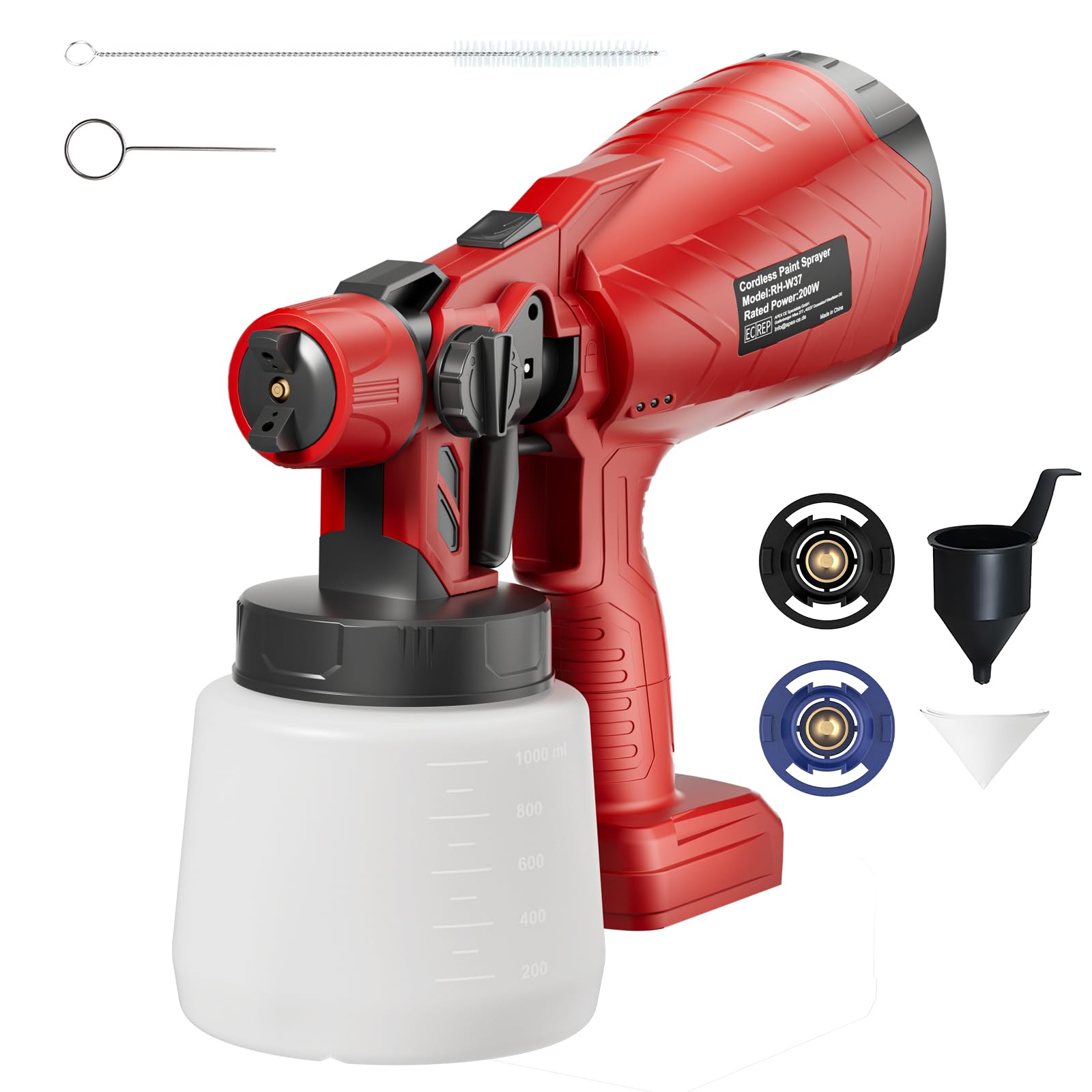 Pulverizador de pintura para batería Milwaukee de 18 V, pistola de pintura inalámbrica de 200 W con boquillas de cobre, rociadores