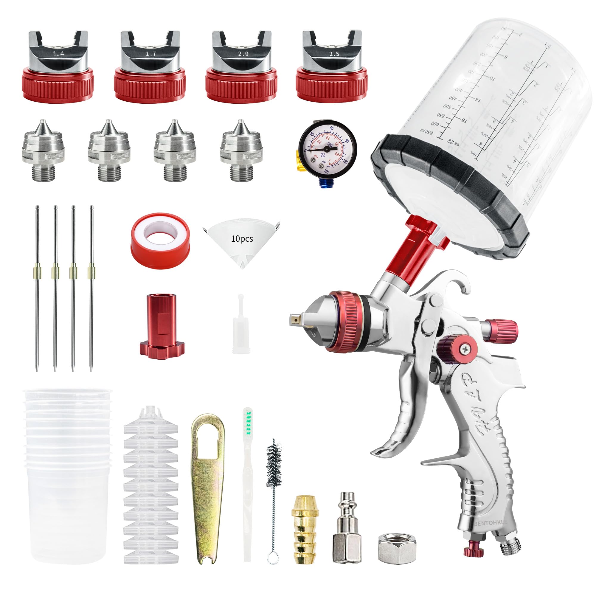 HVLP – Pistola pulverizadora con 10 vasos de pintura desechables de 22.0 fl oz, pistola de pulverización automotriz con boquillas