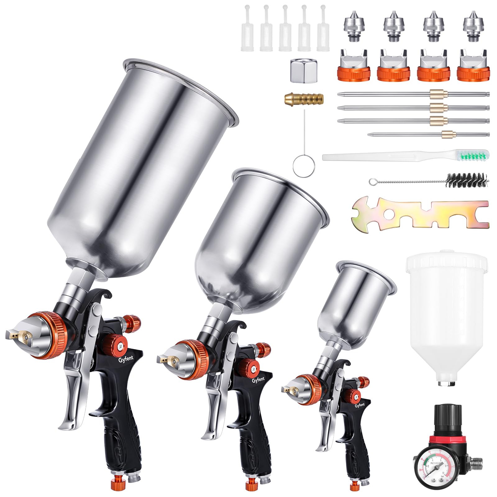 YUZES HVLP – Kit de pistola pulverizadora con boquillas de 1.4/1.7/0.079 in y filtro de aire con medidor de presión, pistola de pi