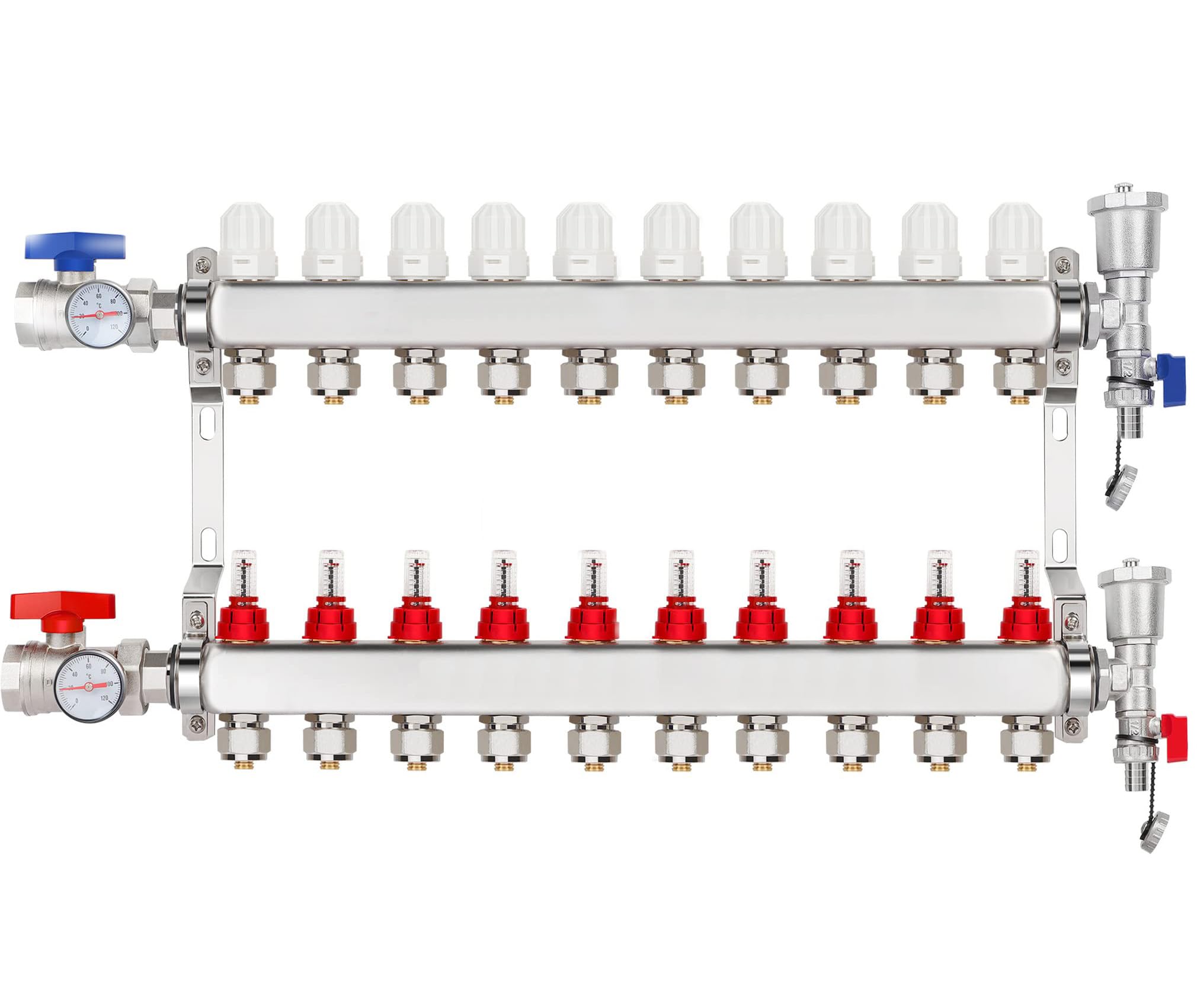 Colector de calor radiante de acero inoxidable de 10 bucles, colector de tubos PEX de 1/2 pulgada con adaptadores de 1/2 pulgada,