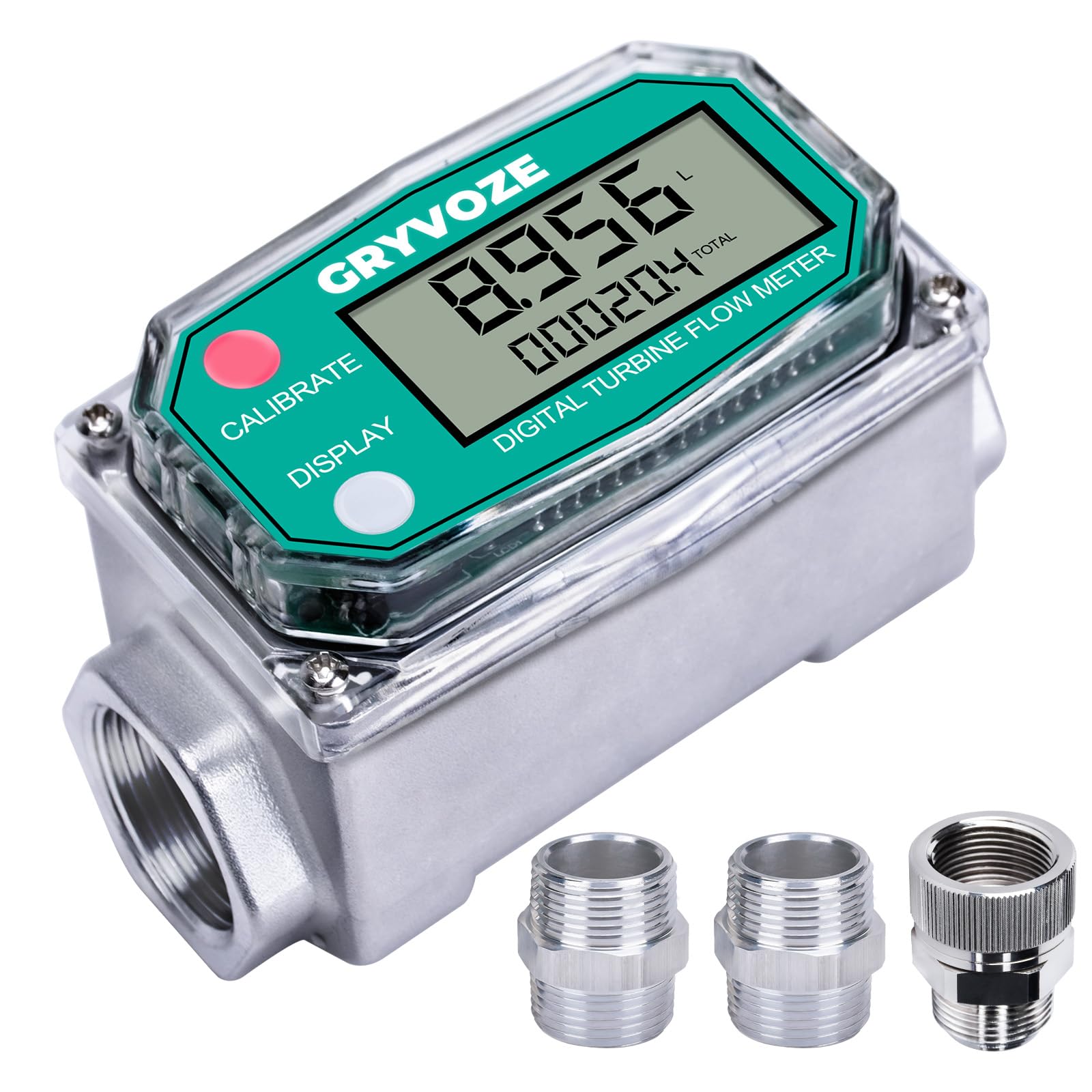 Medidor de flujo de combustible de turbina de 1 pulgada, medidor de flujo de rosca NPT en línea de 2.6-26 GPM con adaptadores de 3