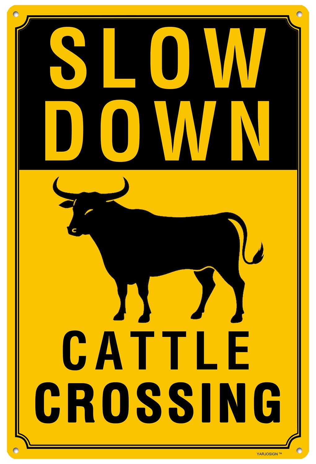 Slow Down – Letrero de cruce de ganado, aluminio duradero, 12 x 16 pulgadas, resistente al óxido, fácil de instalar, ideal para ca