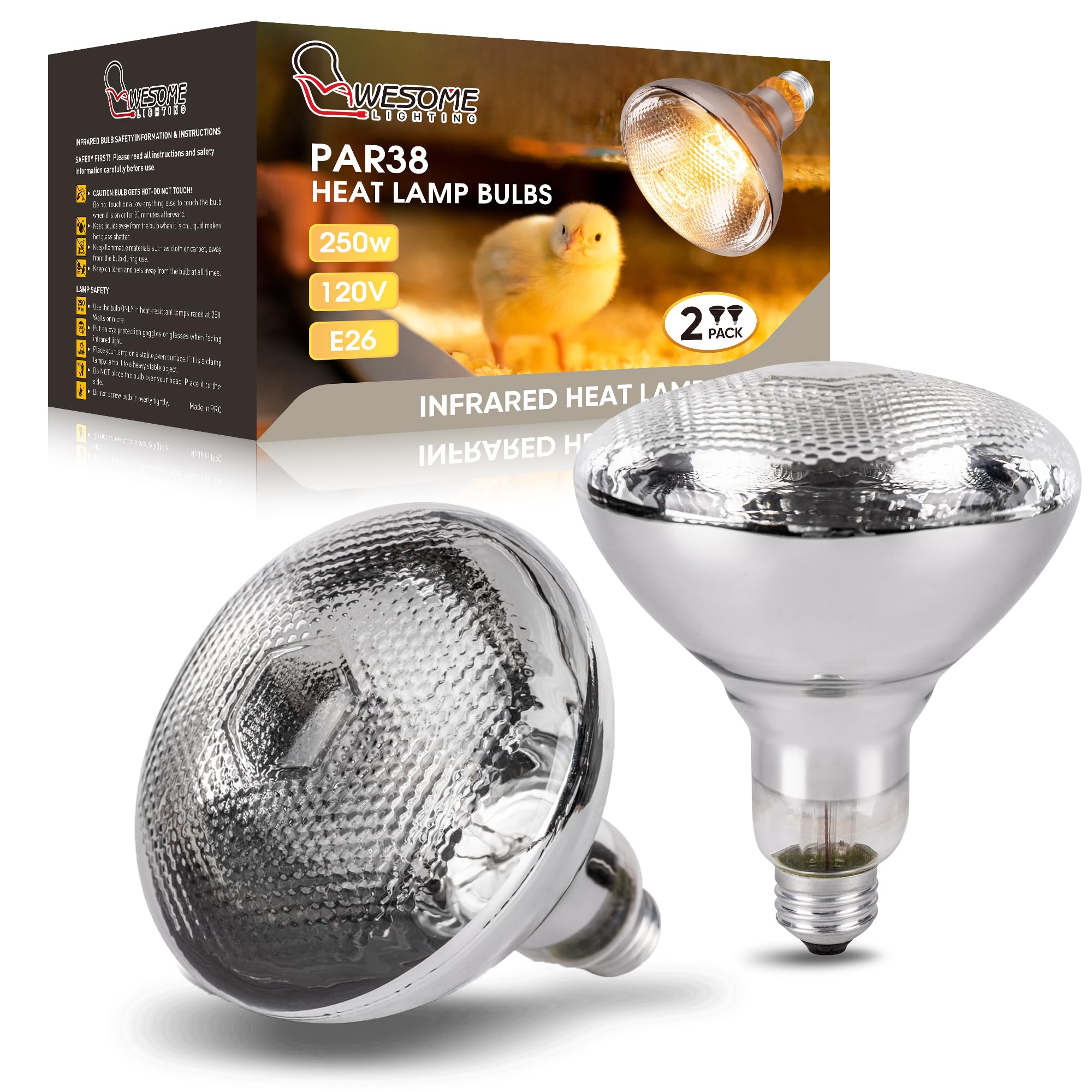 PAR38 – Bombillas de calor de 250 W para pollos, lámpara de calor de vidrio transparente, reflectora infrarroja para mascotas, bañ