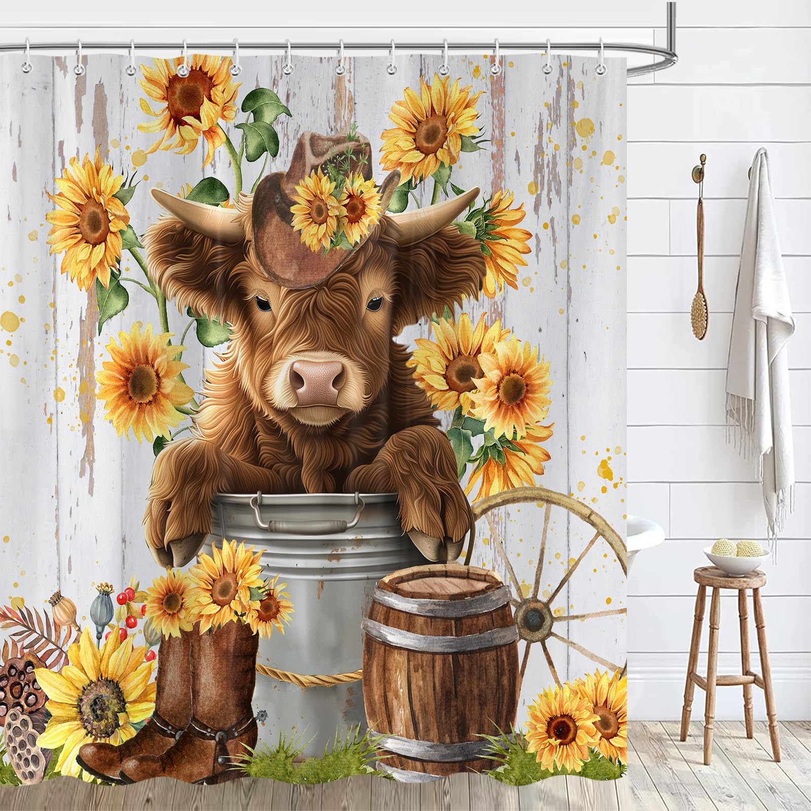 Bonita cortina de ducha de vaca de las tierras altas para baño, juego de decoración de baño rústico de vaca, girasol, occidental,