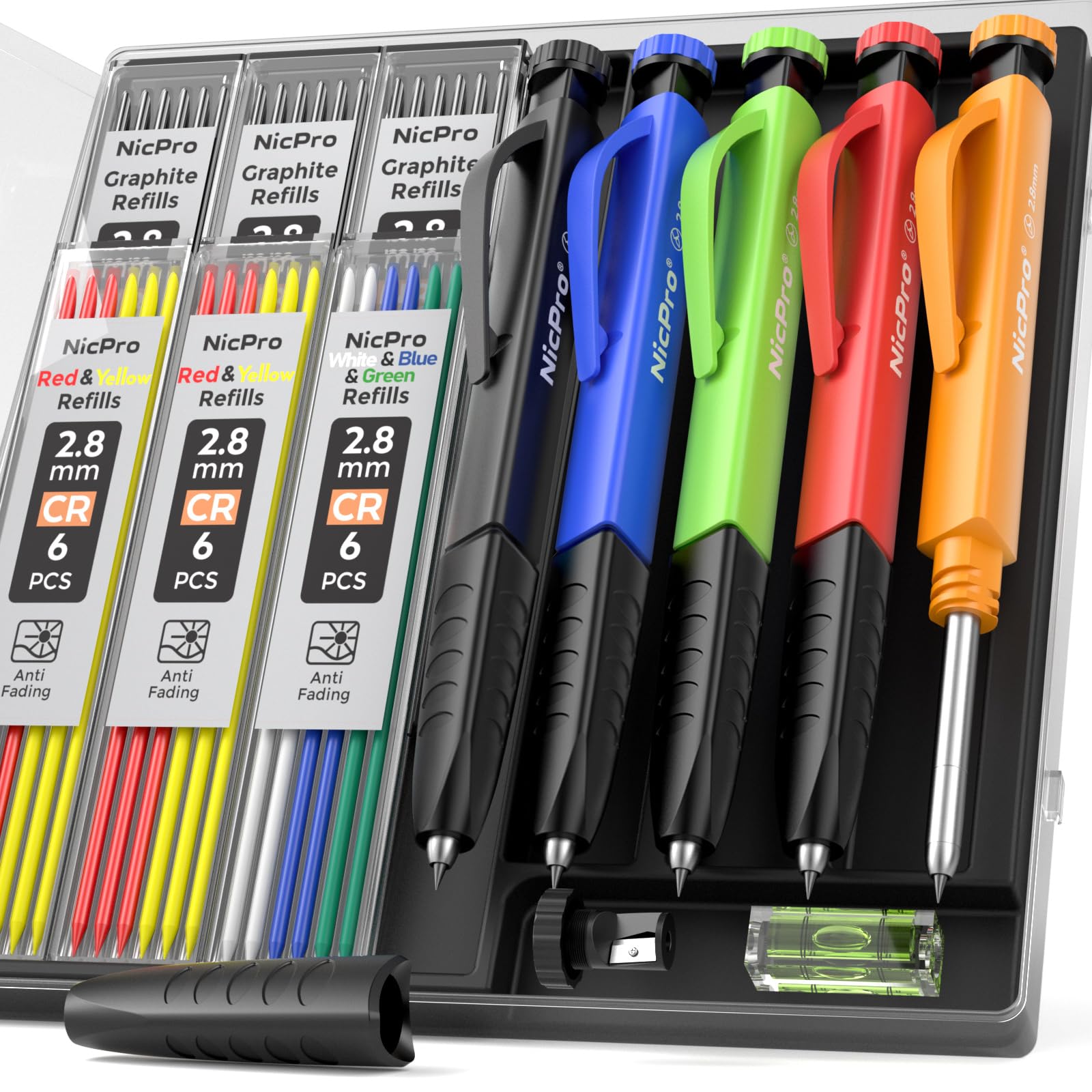Nicpro Juego de 5 lápices mecánicos de carpintero con sacapuntas y agarre para los dedos, lápices mecánicos para carpintería con 4