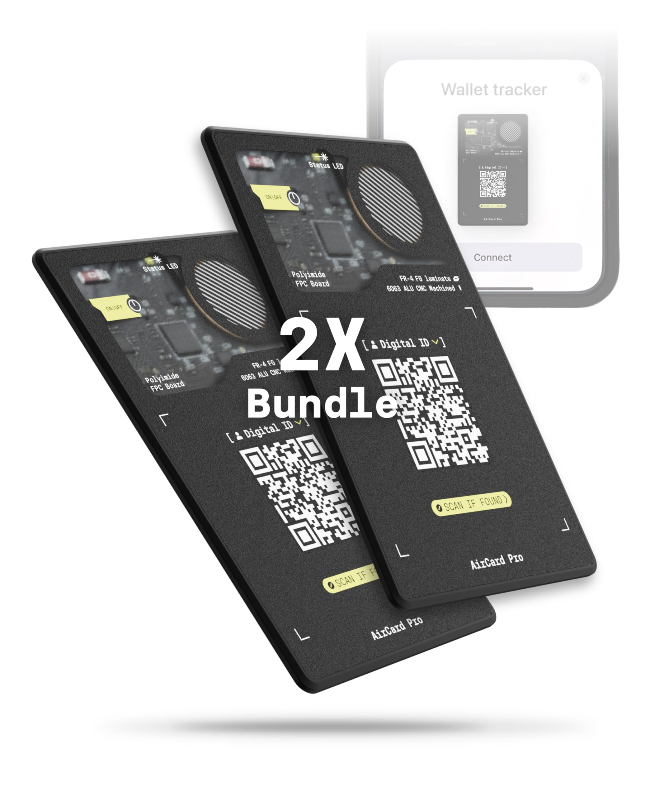 Rolling Square AirCard Pro – Apple Find My only – Tarjeta de seguimiento Bluetooth (paquete de 2), carga inalámbrica, identificaci