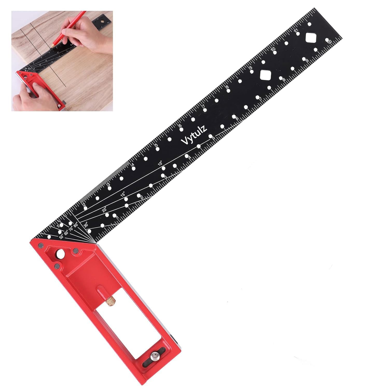 Preciva Regla cuadrada de carpintero de 12 pulgadas, cuadrada de aleación de aluminio, regla de ángulo recto de metal con soporte