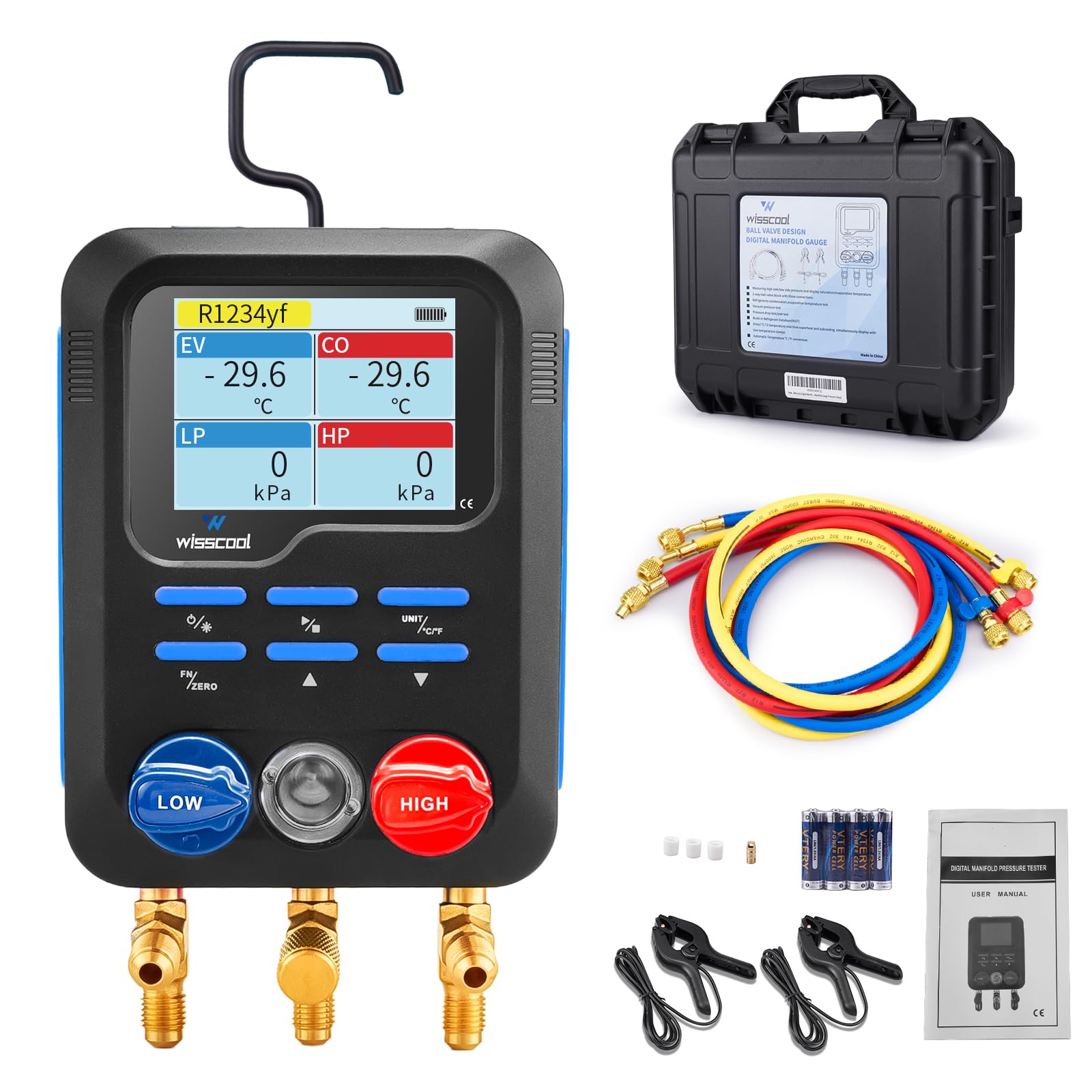 Medidores digitales Minifold HVAC, R22, R134A, R410, R502, R1234yf Presión de vacío de 3 vías con LCD 3 mangueras 2 sondas de abra