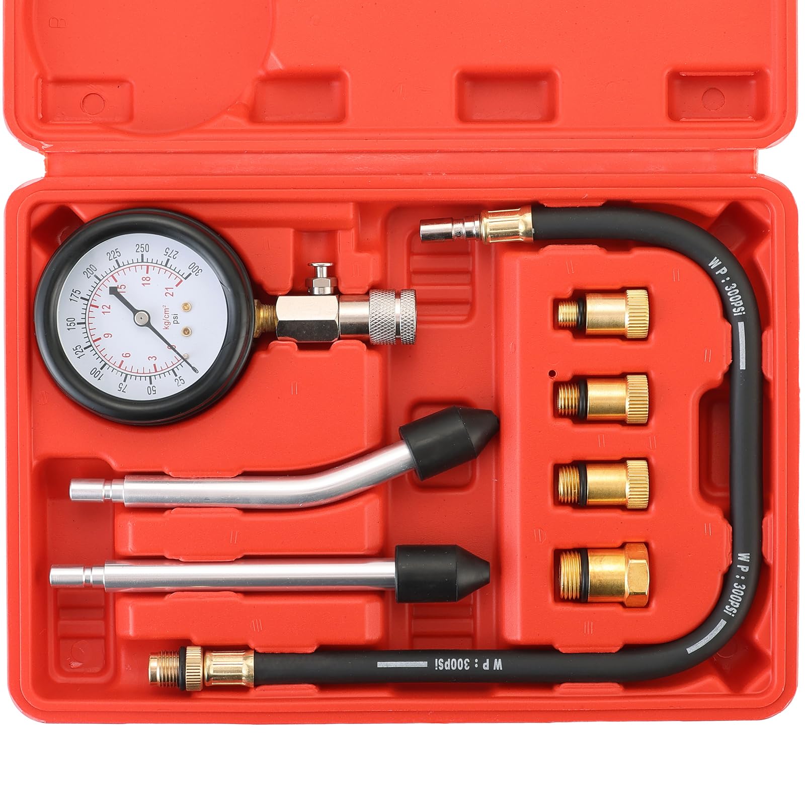 DASBET Kit de probador de compresión de cilindro de motor de gasolina de 8 piezas, kit de probador de compresión, medidor de presi