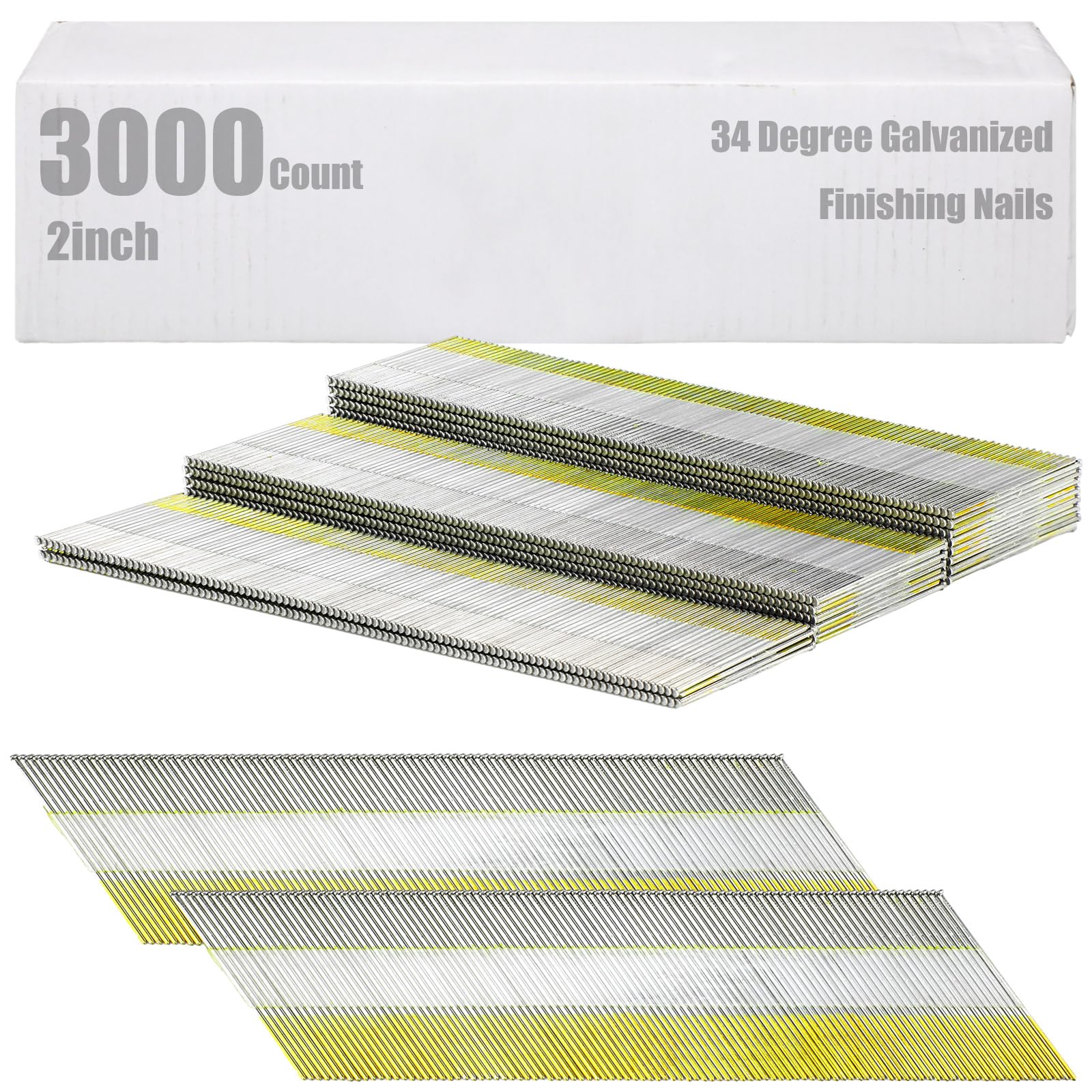 Therwen 3000 clavos de acabado de calibre 15, clavadora de acabado en ángulo galvanizado de 34 grados para uñas neumáticas y eléct