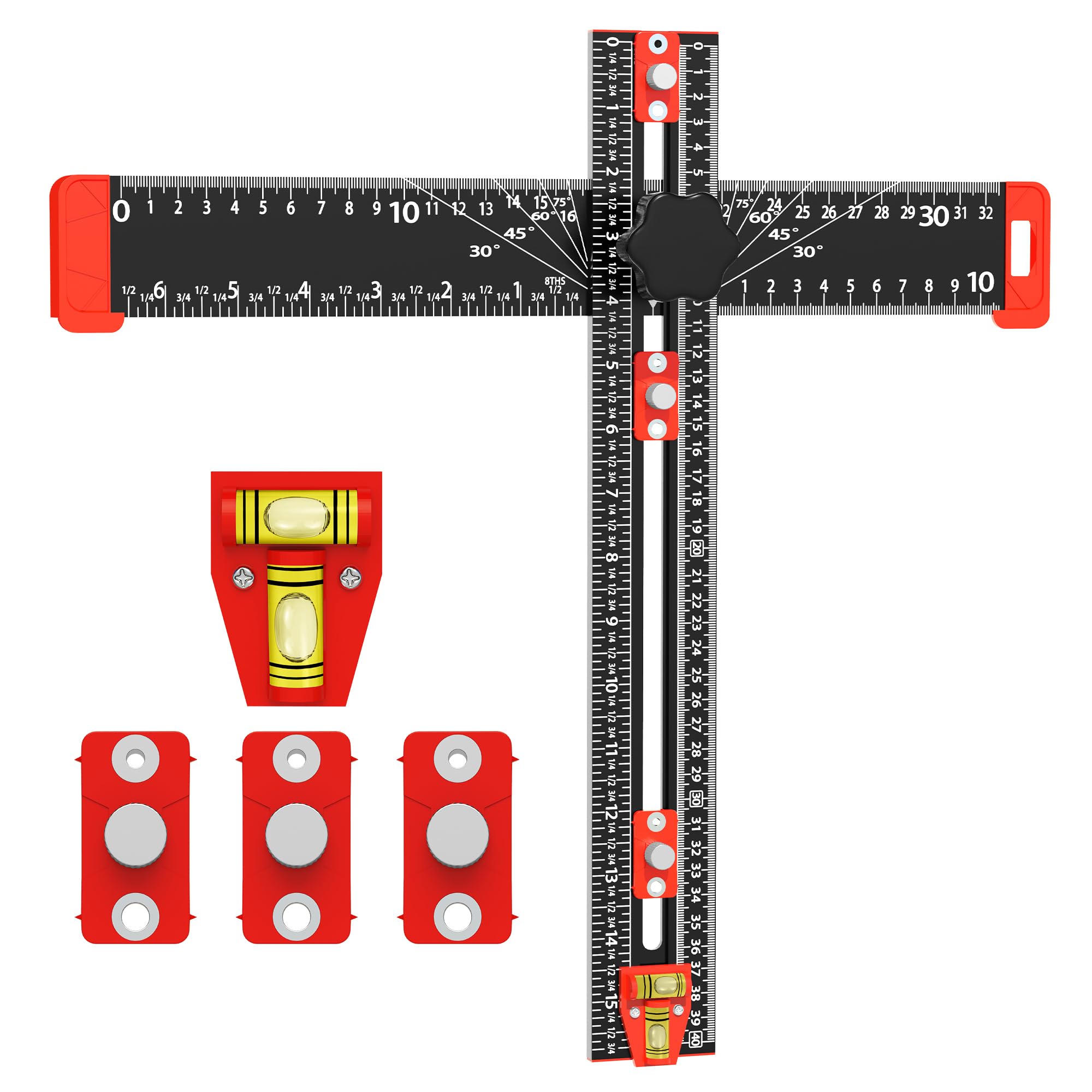 Plantilla de posicionamiento de perforación 4 en 1, plantilla de ángulo ajustable cuadrado en T multifuncional de 13.8 in/14 pulga