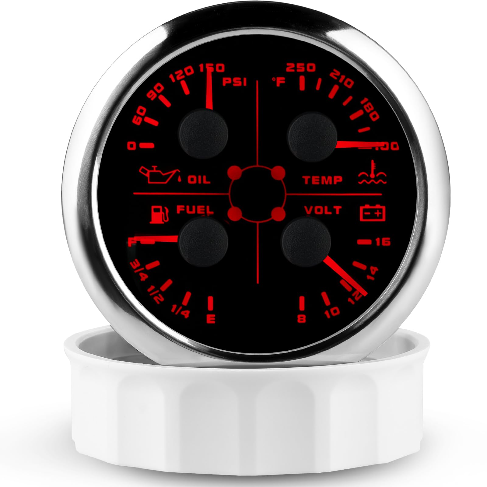 WATERWICH Medidor de combustible 4 en 1 de 3.346 in de temperatura del agua, presión de aceite, voltímetro de 3.34 pulgadas para a