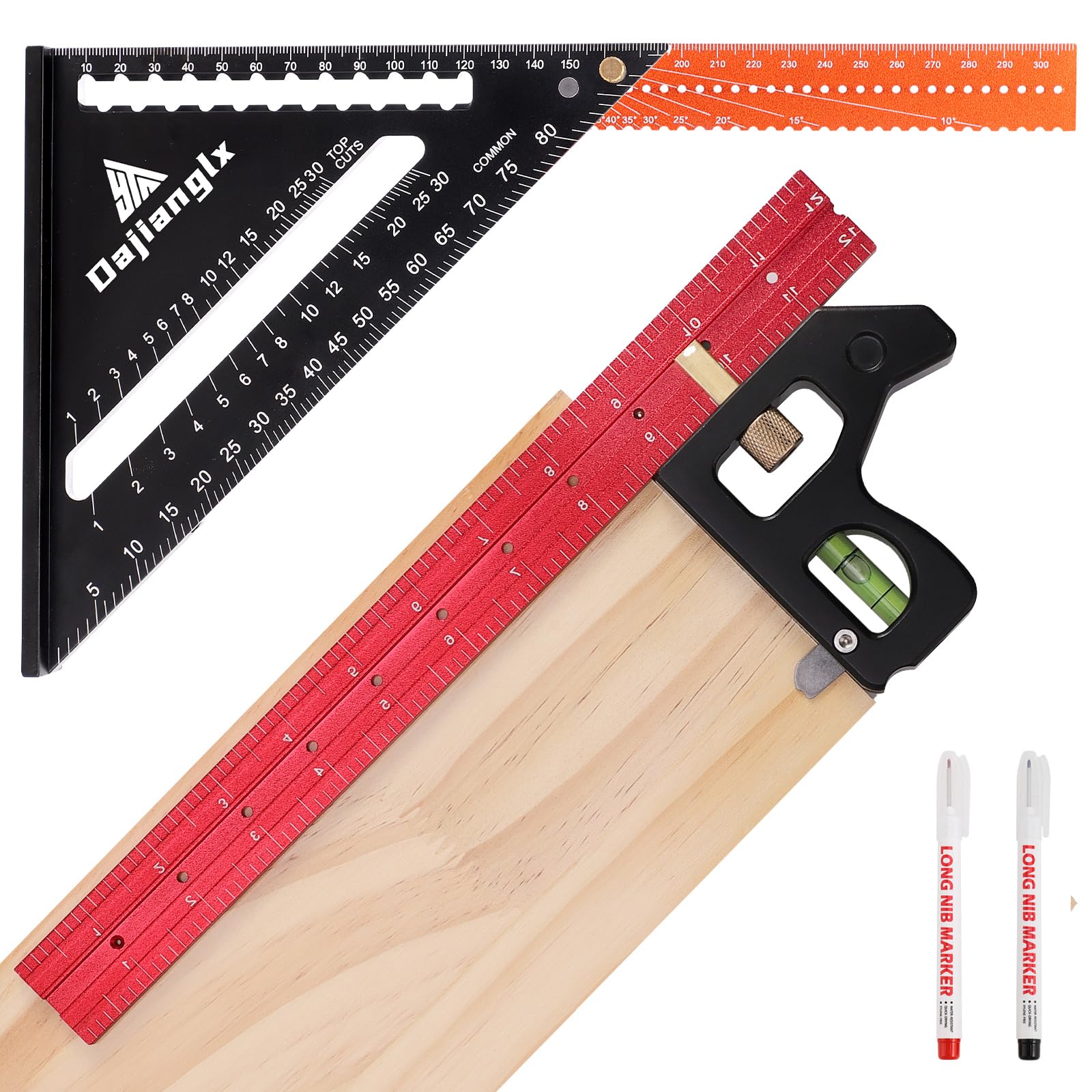 Cuadrado plegable de 7 pulgadas y cuadrado de combinación de 12 pulgadas con vial de burbujas para herramienta de medición de carp