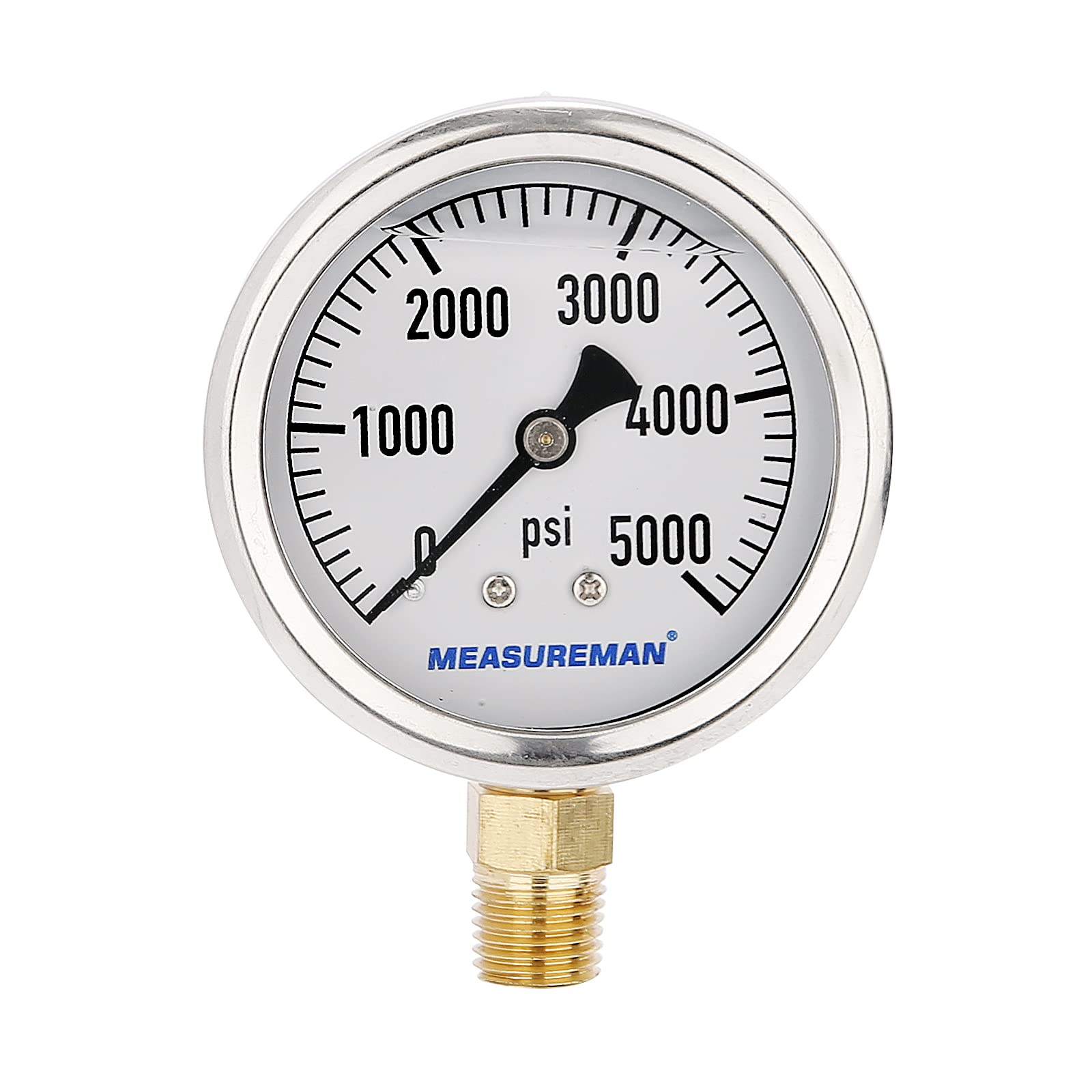 MEASUREMAN – Manómetro de plomería relleno de glicerina, tamaño del dial de 2.5 pulgadas, 0 a 5000 psi, caja de acero inoxidable,