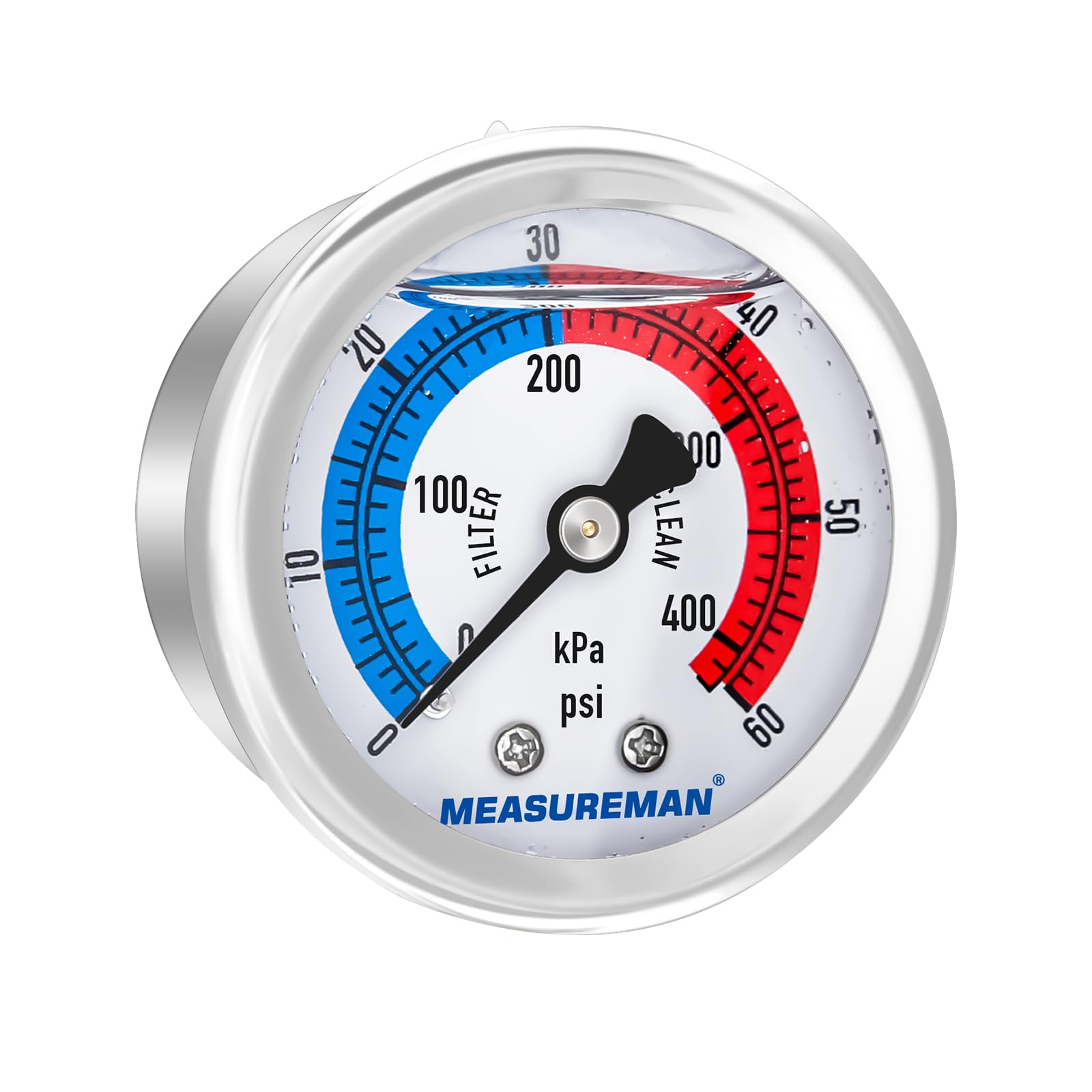 MEASUREMAN Tamaño del dial de 2″, medidor de presión de filtro de piscina lleno de líquido, caja de acero inoxidable 304, 0-60psi/