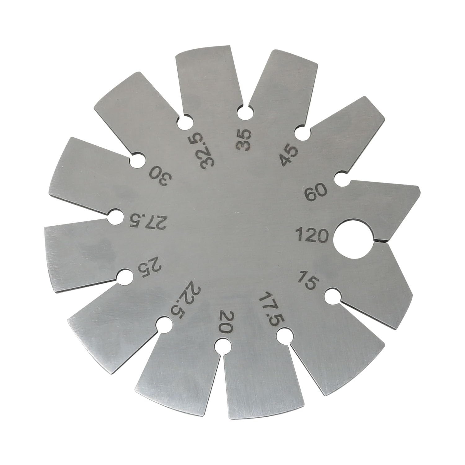 Cuchillo de forma redonda de 15-120 grados, buscador de ángulo de cuchilla, calibre de ángulo de hoja de acero inoxidable, calibre