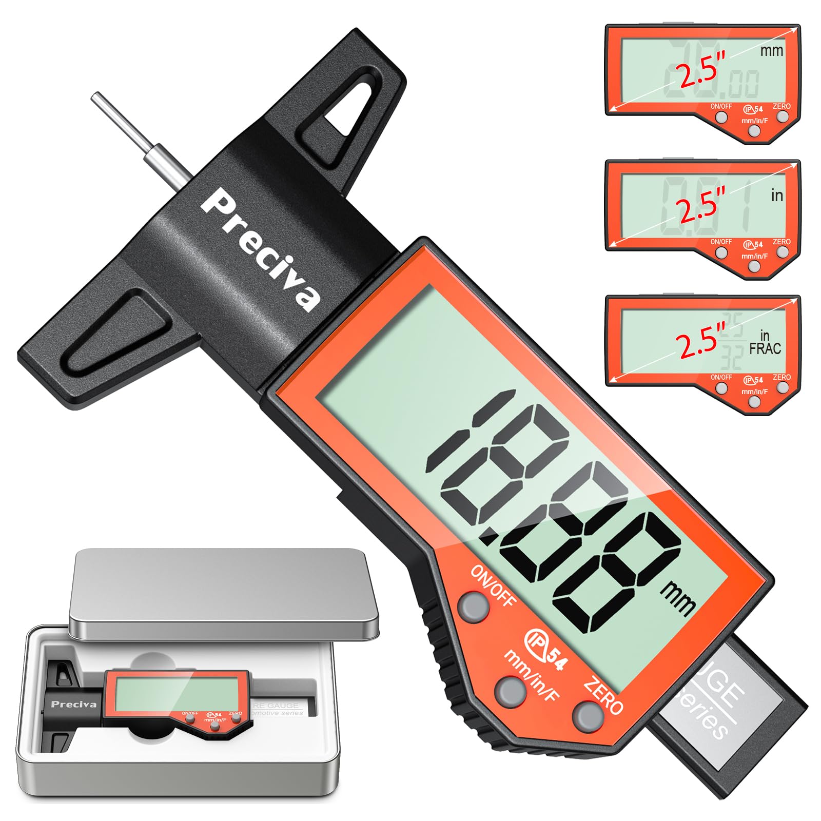 Preciva Medidor de profundidad de banda de rodadura de neumáticos, medidor digital de profundidad de neumáticos con pantalla LCD g