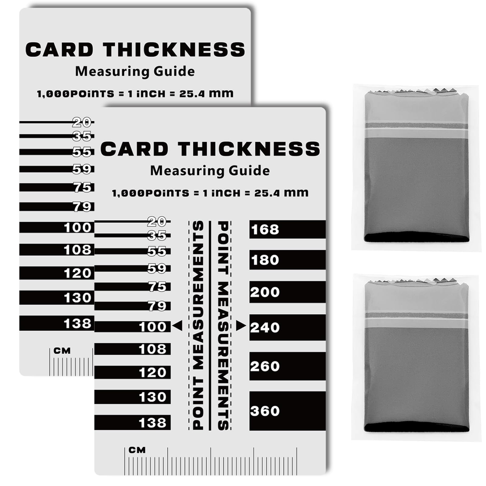 Herramienta de medición de grosor de tarjetas deportivas: 2 unidades de calibradores de puntos de tarjeta y 2 paños de limpieza de