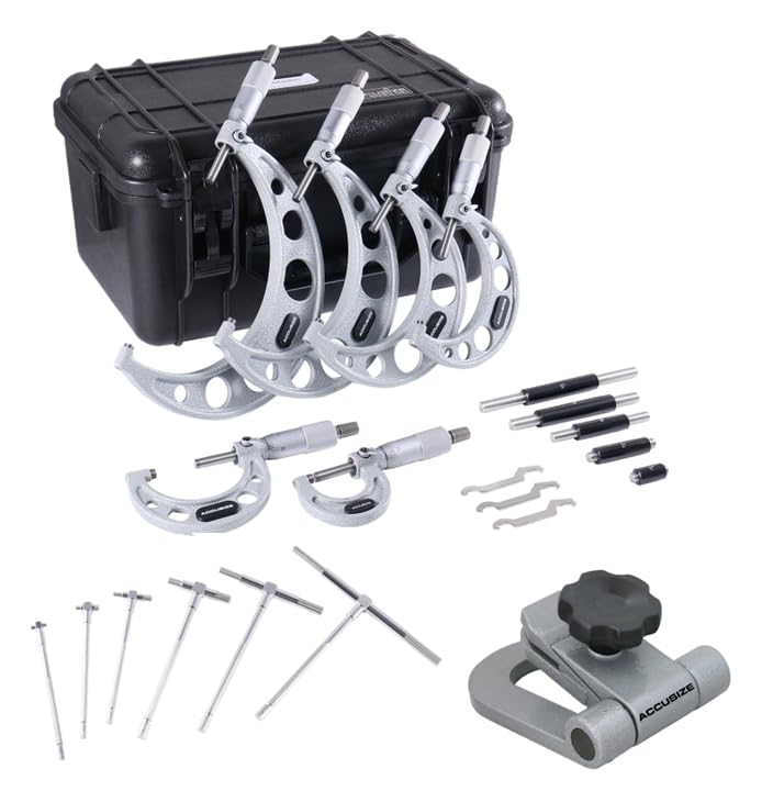 Accusize Industrial Tools Juego de micrómetros exteriores de ultra precisión de 6 piezas, además de un soporte de micrómetro portá
