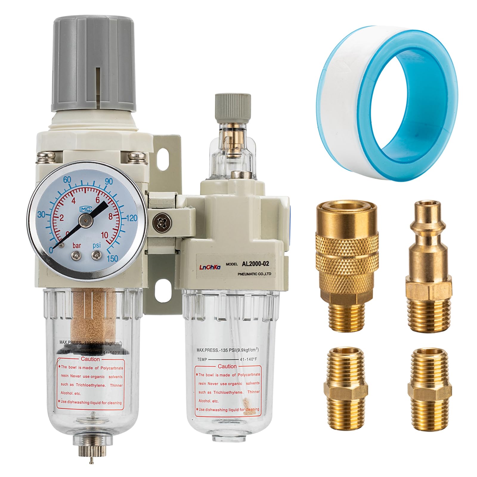 Regulador de presión de aire con medidor de presión (0-150PSI), separador de agua para compresor de aire, drenaje semiautomático,