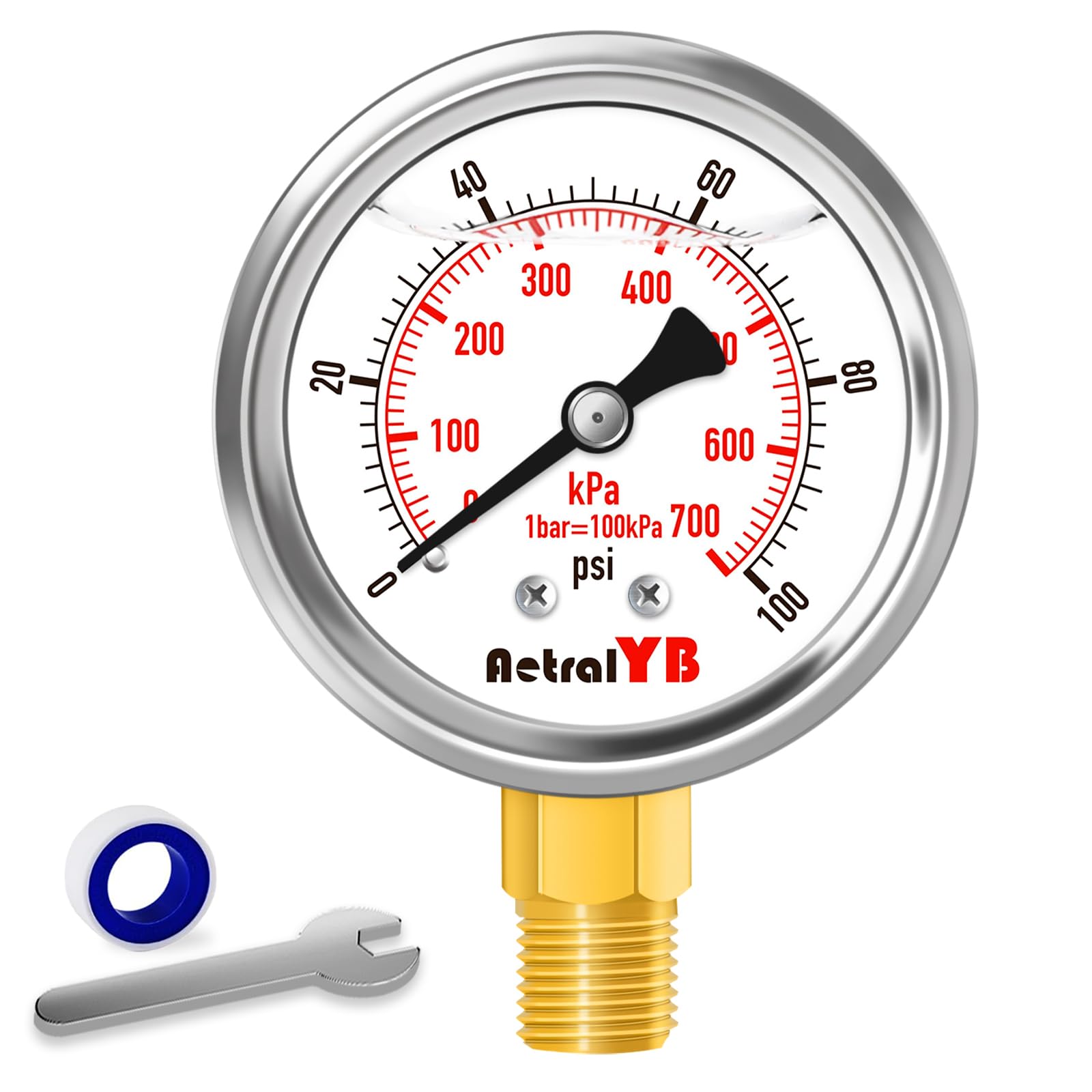 Medidor de presión de 0-100 psi, relleno de glicerina, montaje inferior NPT de 1/4″, acero inoxidable, medidor de presión de filtr