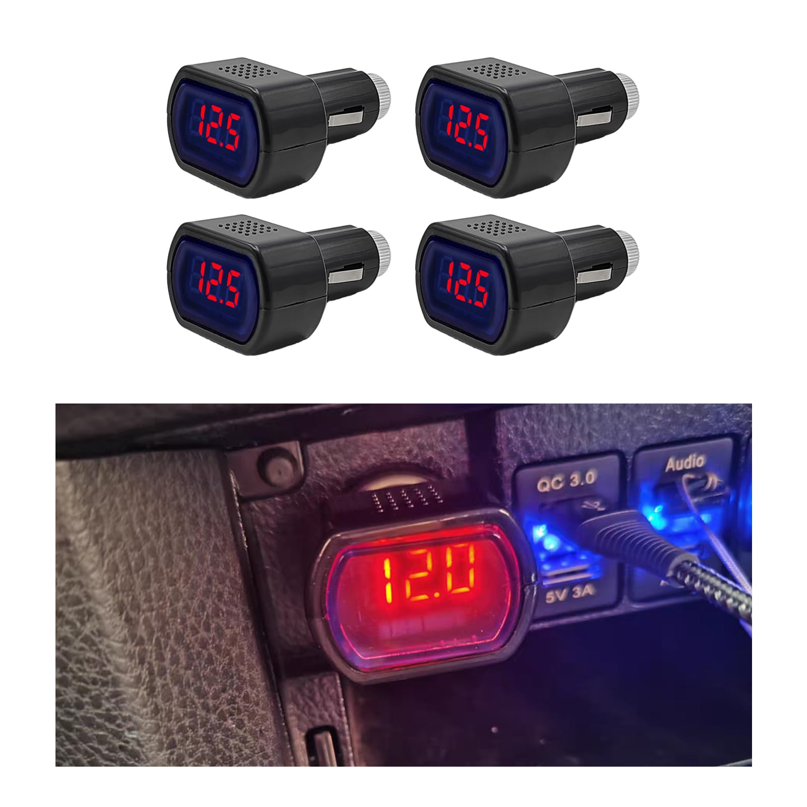 4 voltímetros LED para encendedor de cigarrillos para automóvil, medidor digital de voltaje de batería de 12 V 24 V CC, monitor de