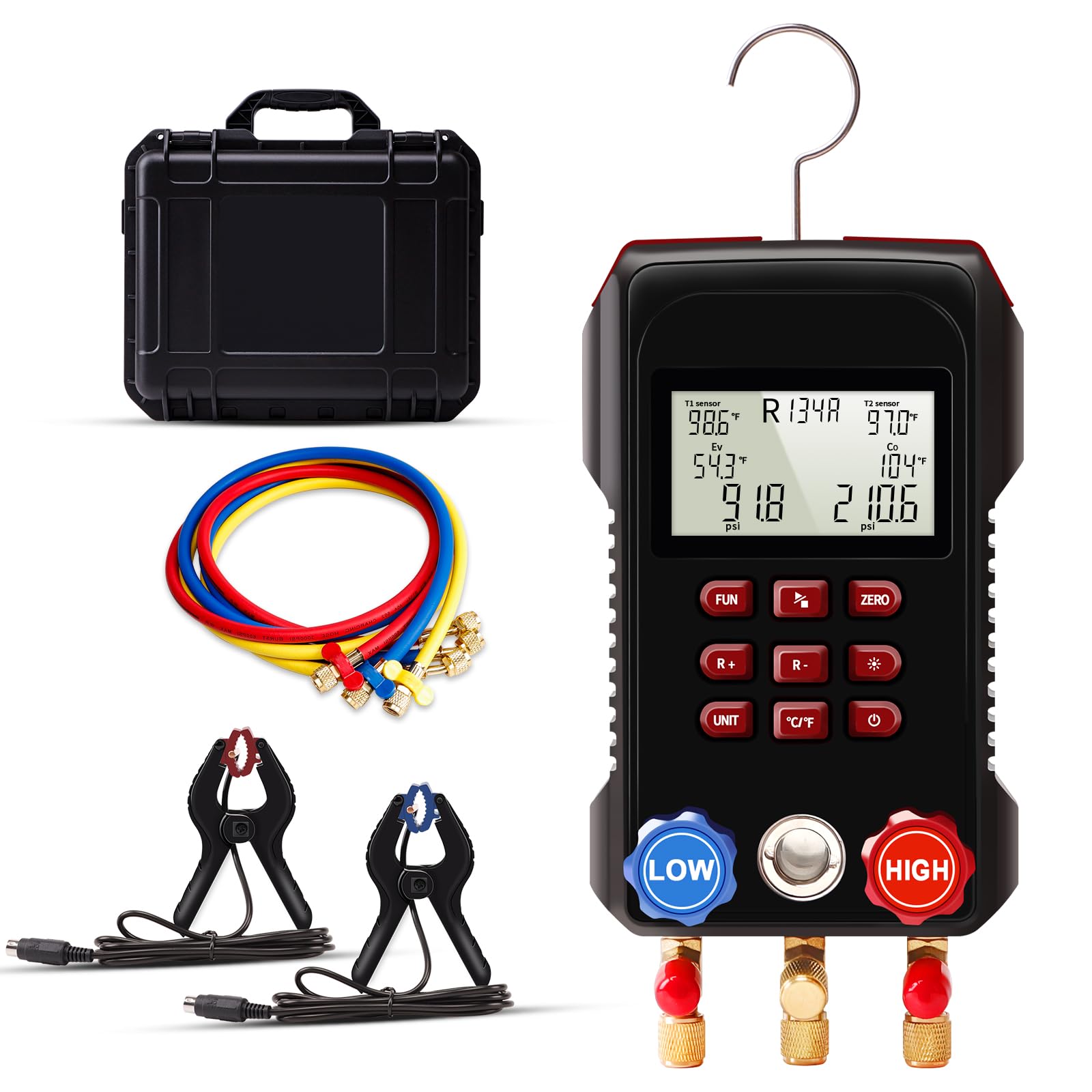 Medidor de colector digital, juego de medidor de CA digital SIMBOW AMF-300 con manguera de aire de alto rendimiento de 3000 psi, a