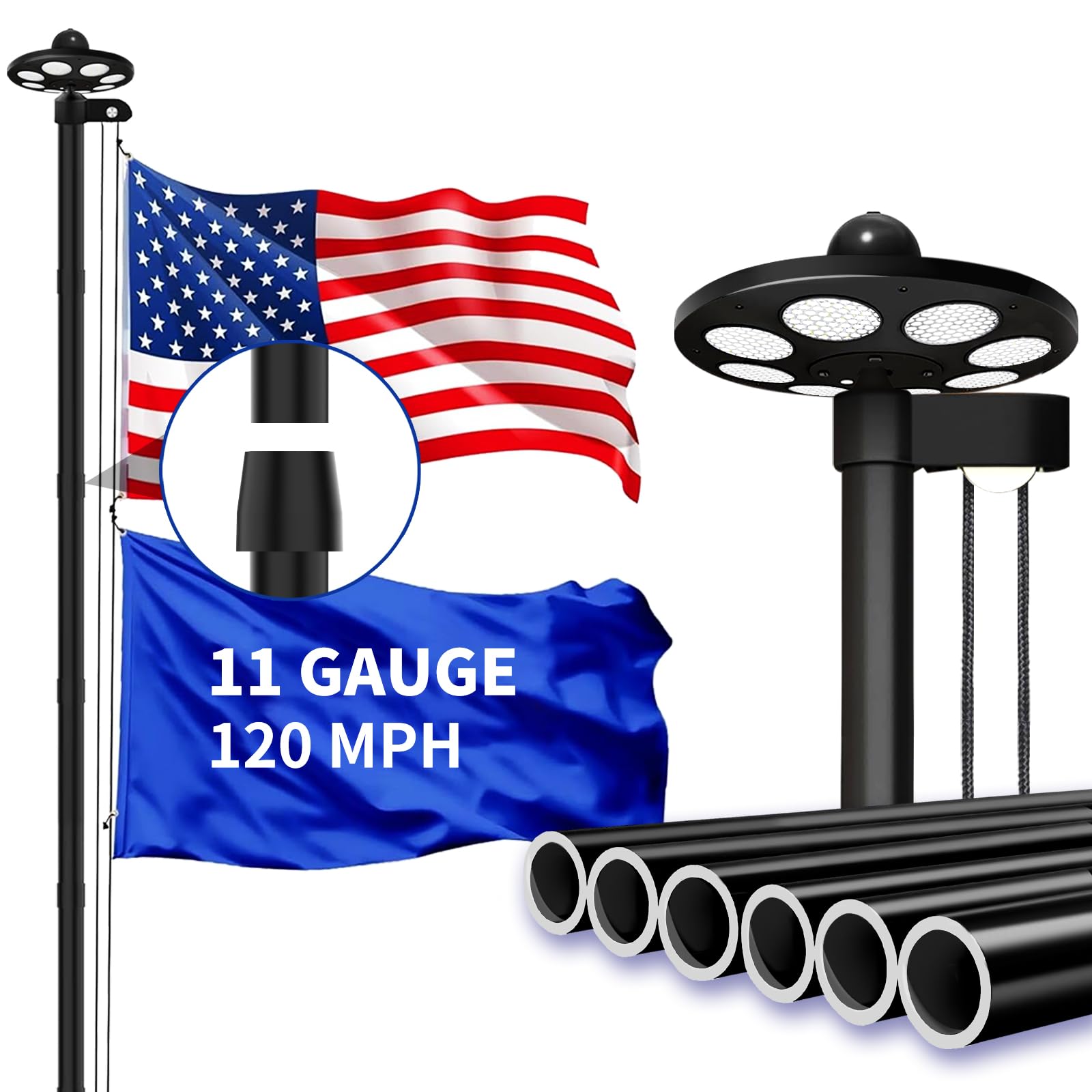 Kit de mástil de bandera resistente de calibre 11 con luz solar, mástiles de bandera de 25 pies para exteriores de casa en el suel