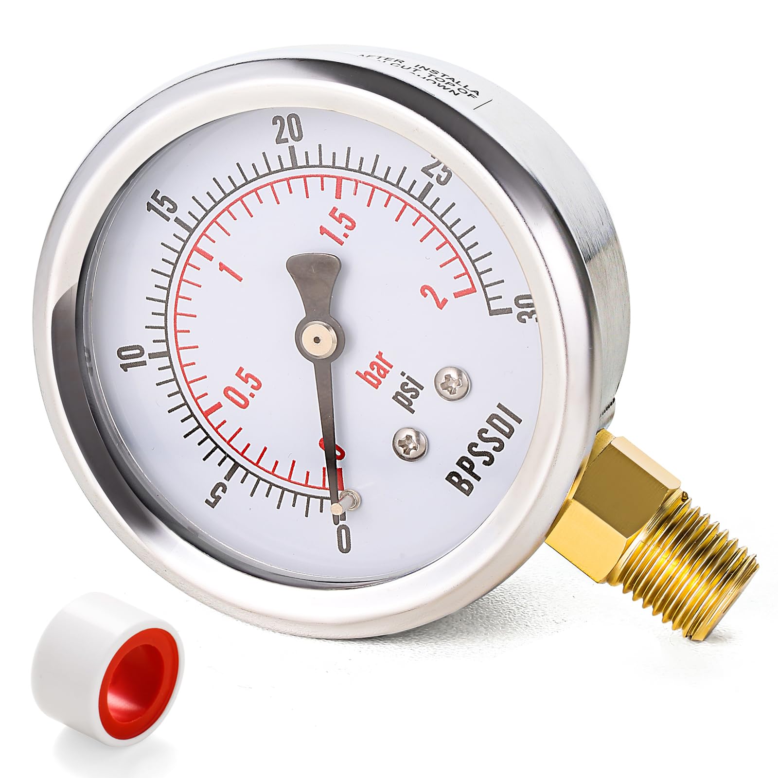 Winters PFP Series Premium – Medidor de presión de acero inoxidable 304 con relleno de líquido, escala única, 0-30 psi, pantalla d