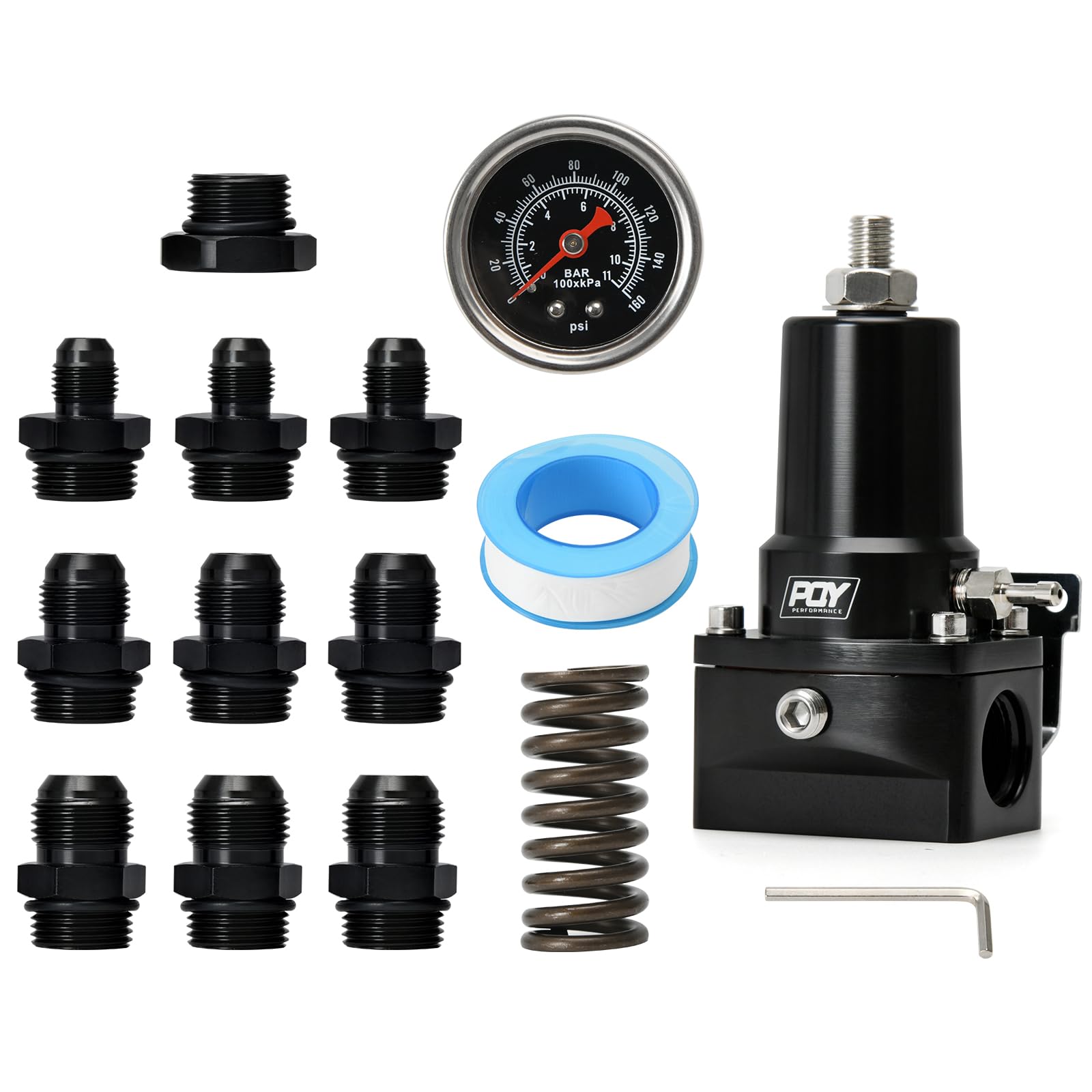 Kit de regulador de presión de combustible EFI universal ajustable con manómetro de presión de combustible de 0-160 psi y kit de c