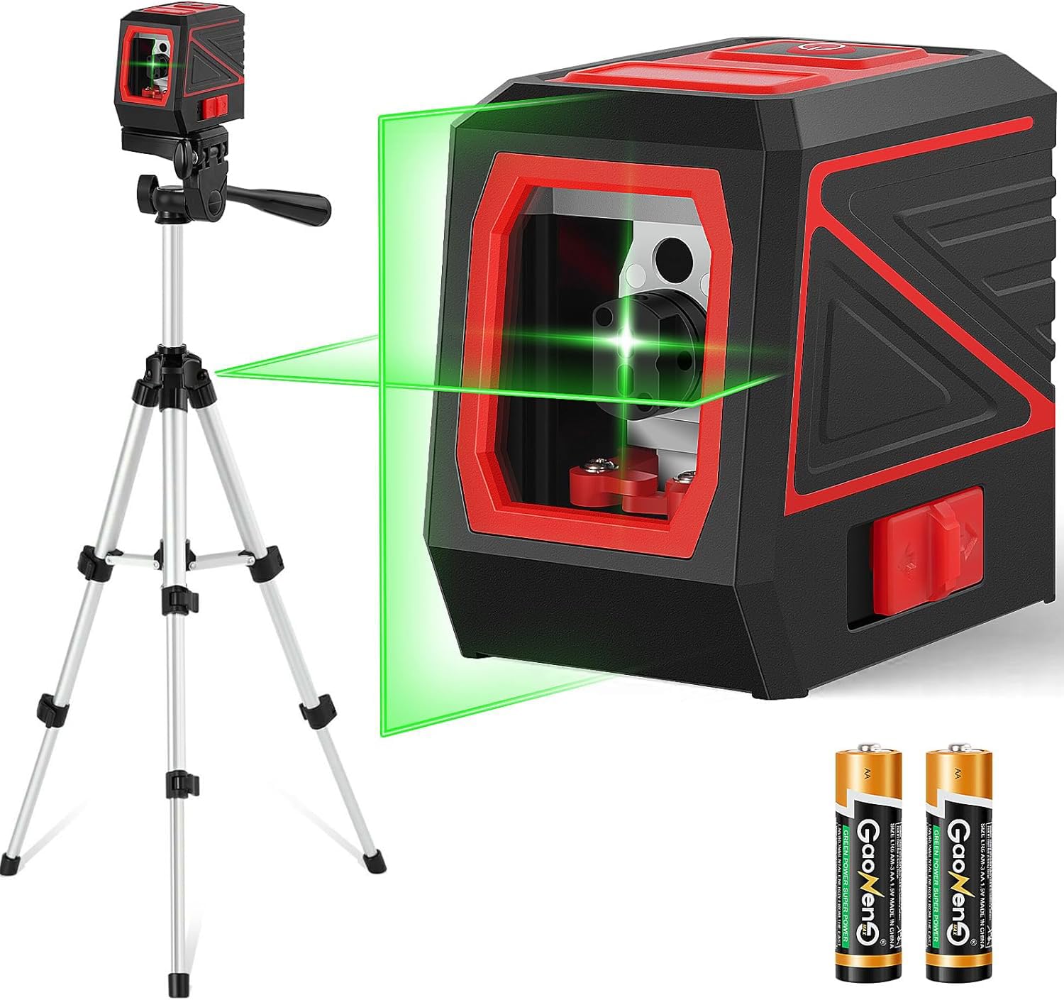 Huepar – Nivel láser con trípode, 100 pies, autonivelante de línea cruzada verde, herramienta de nivelación láser para colgar foto