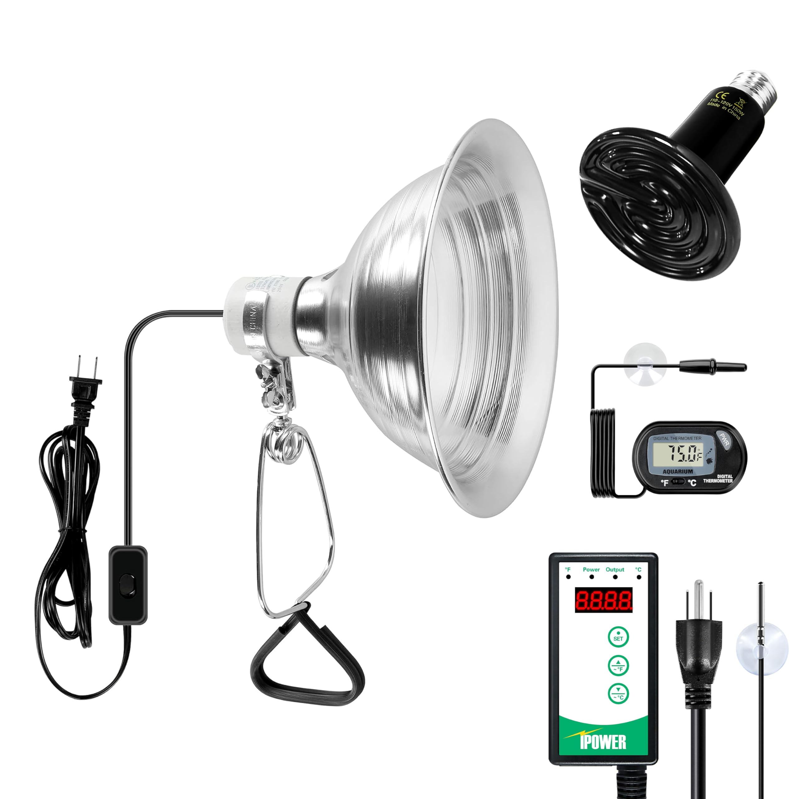 Simple Deluxe Bombilla de calor para reptiles de 150 W y controlador de termostato digital de 40 a 108 grados Fahrenheit incluido,