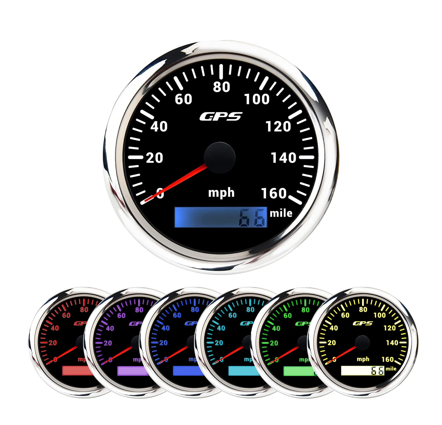 7 color GPS velocímetro odómetro impermeable, 0-160 MPH para coche barco motocicleta ajuste 9-32V