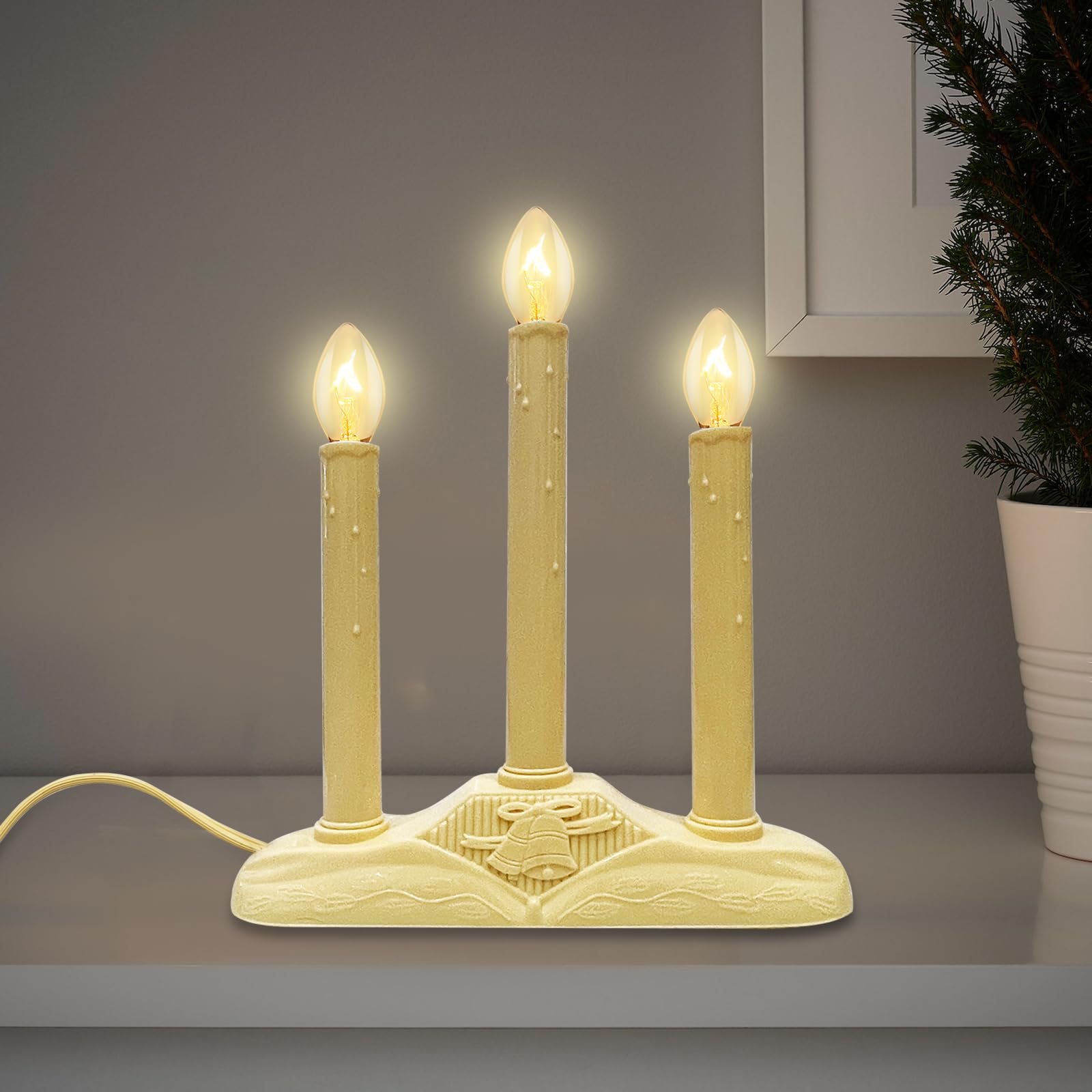 Candolier – Lámpara eléctrica de vela de Navidad para interiores, plástico marfil con bombillas C7 transparentes, lámpara de vela
