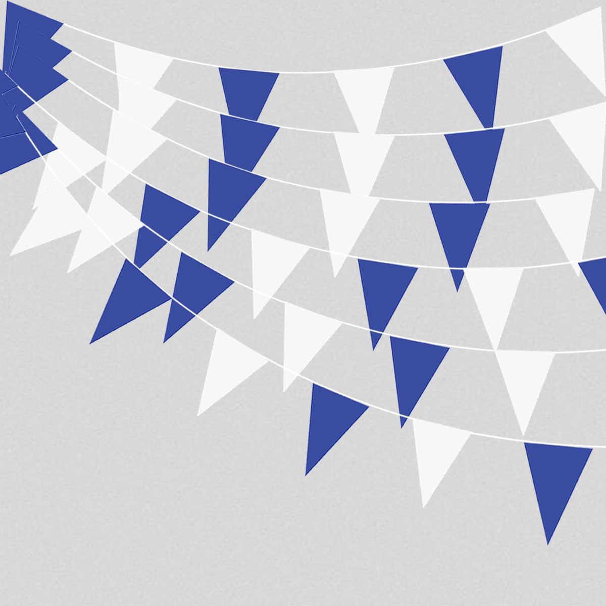 Banderines azules y blancos de 262.5 ft/262 pies, banderines triangulares, pancarta de tela, guirnaldas, decoraciones festivas de