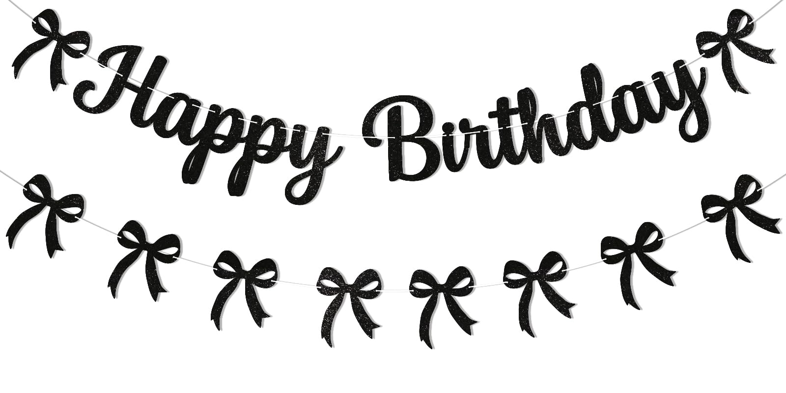Decoraciones de fiesta de cumpleaños con lazo negro coquette, pancarta de feliz cumpleaños y guirnalda de lazo negro, purpurina