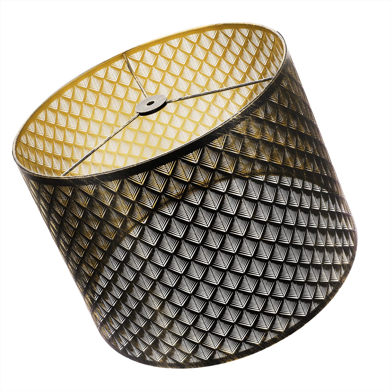 Pantalla de lámpara de metal de tambor con patrón de punta de flecha grabada, 14 x 16 x 11 pulgadas, cubierta de hierro vintage, c