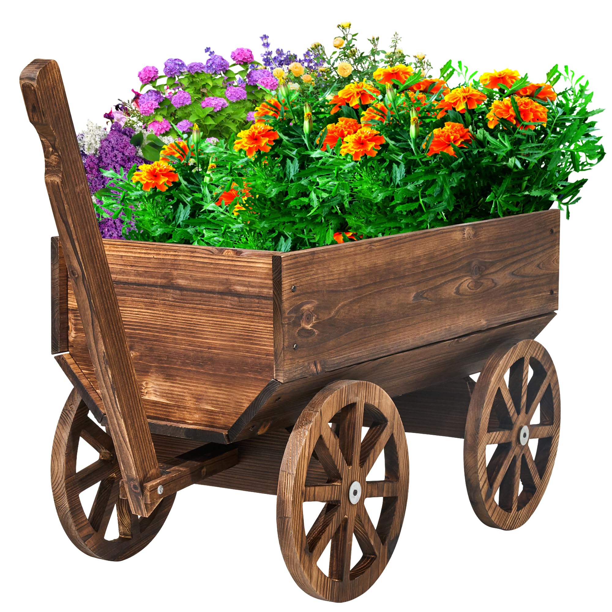HPC Decor – Maceta grande de madera con ruedas, maceta de jardín móvil para flores, hierbas, verduras, decoración duradera para in