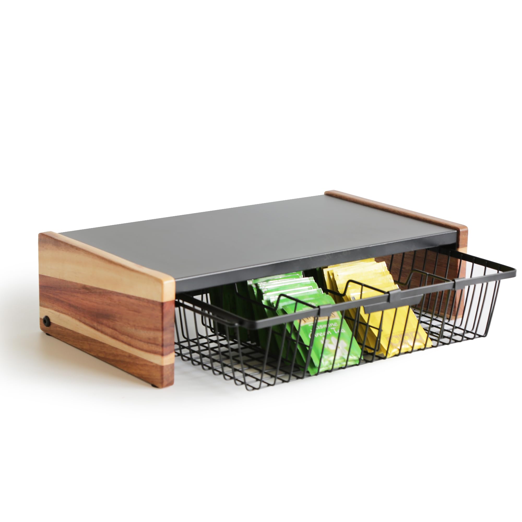 Organizador de bolsas de té, diseño de cajón de cesta de alambre para bolsita de té contenedor para encimera, caja de contenedor d