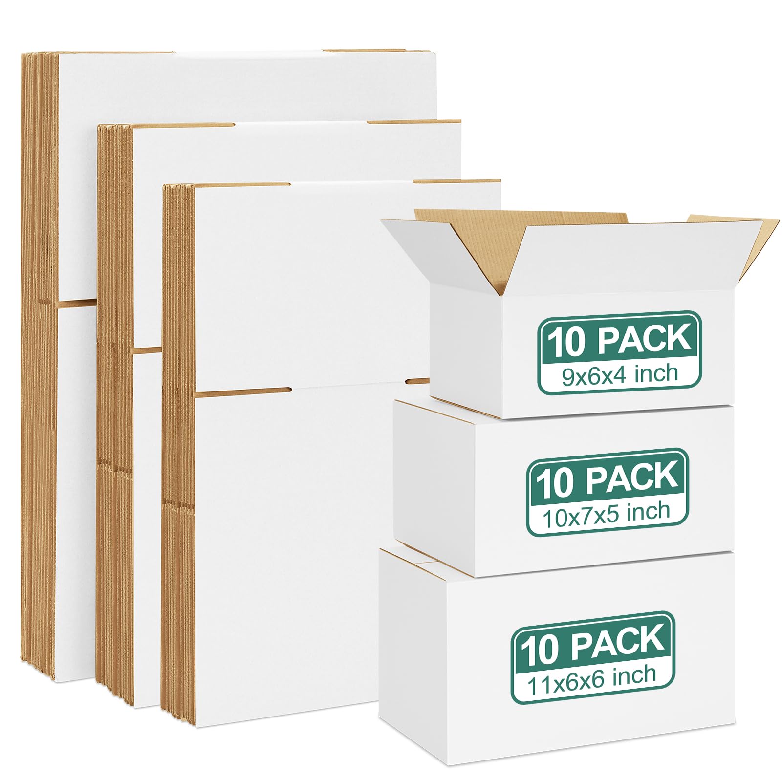 Eupako Paquete de 30 cajas de envío pequeñas de varios tamaños, sobres de cartón corrugado blanco, 9 x 6 x 4, 10 x 7 x 5 y 11 x 6