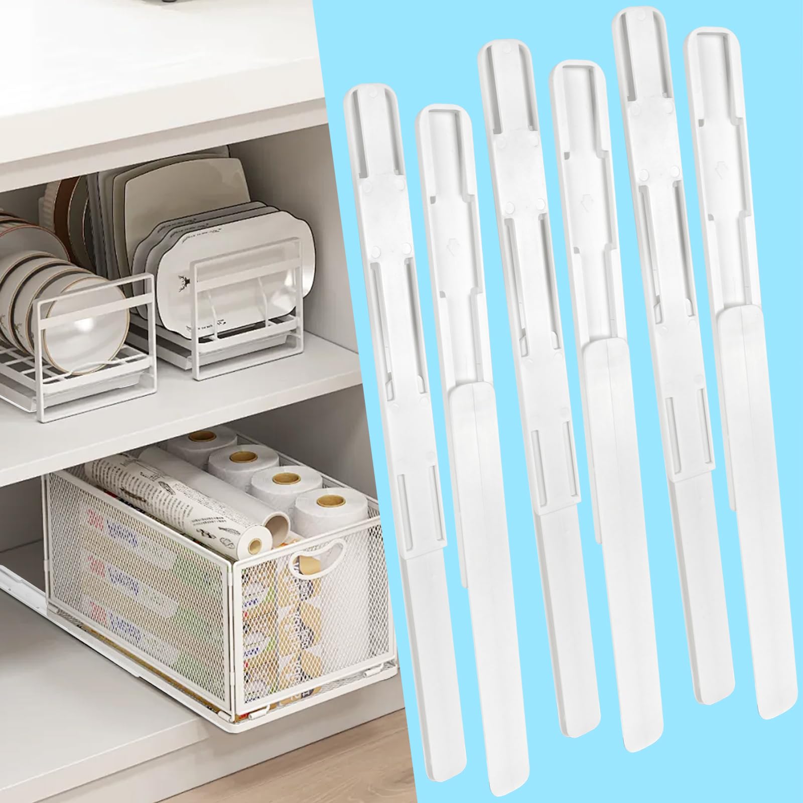 6 piezas deslizantes adhesivos para gabinetes, organizadores de cajones extraíbles, accesorios extraíbles para cestas, contenedore
