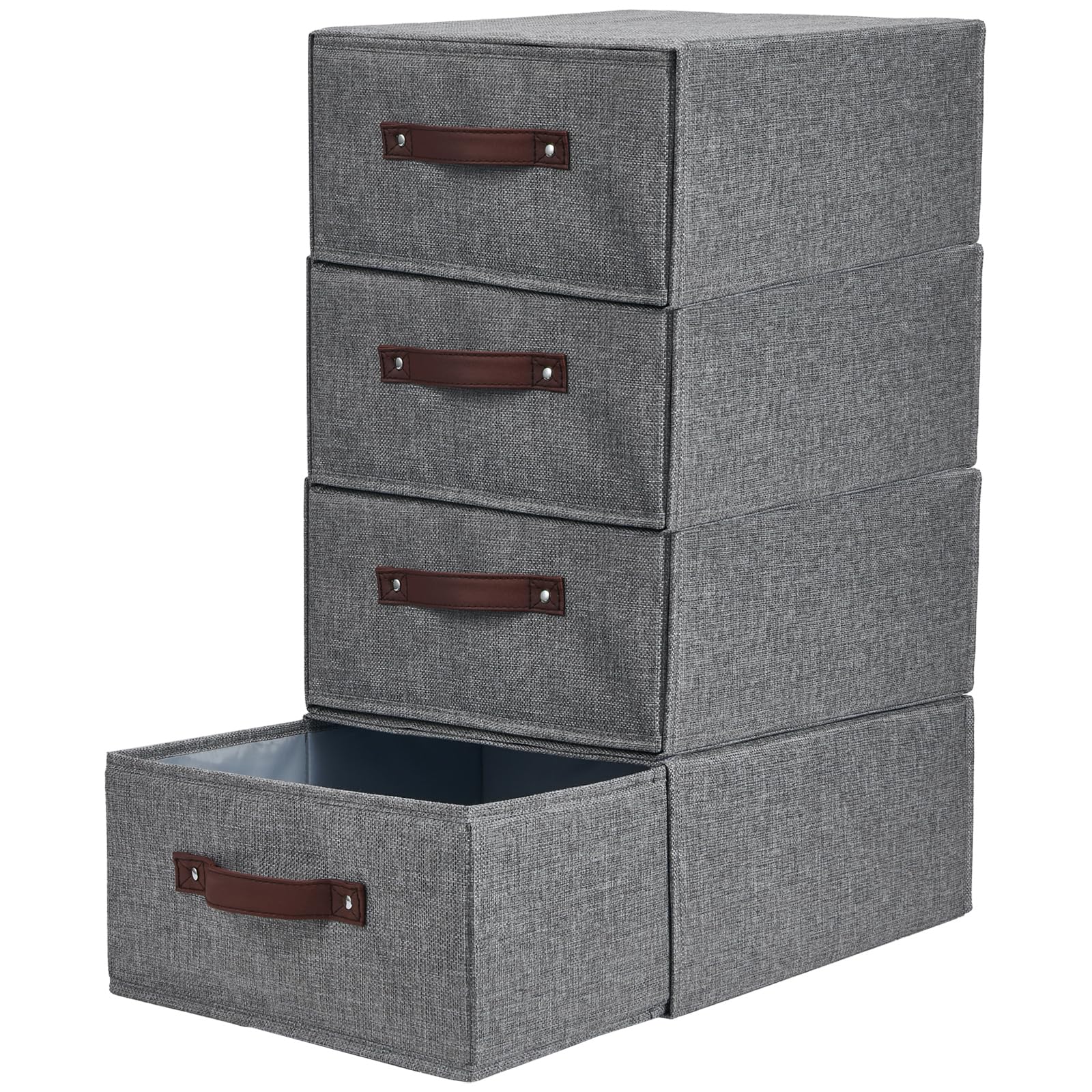 Organizador de cajones de armario, 4 unidades, cajas de almacenamiento apilables de tela, cestas con tapa, asas de piel sintética,